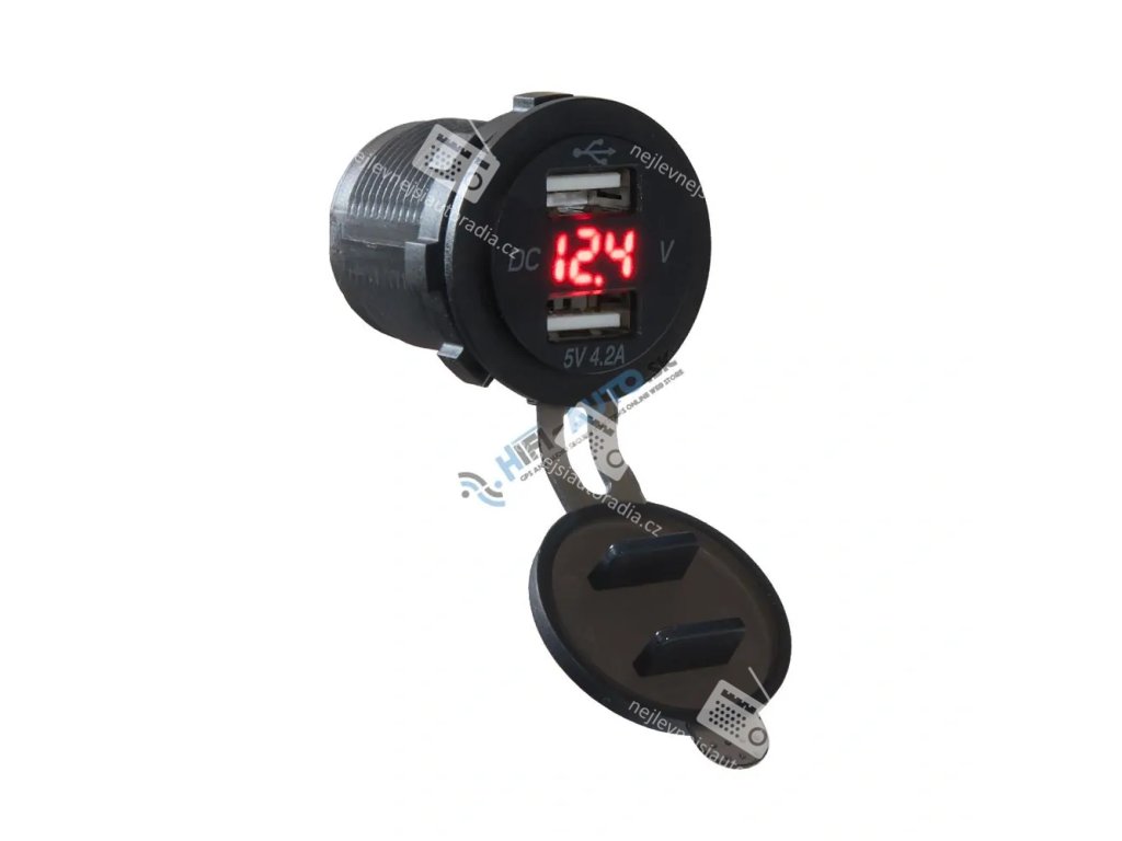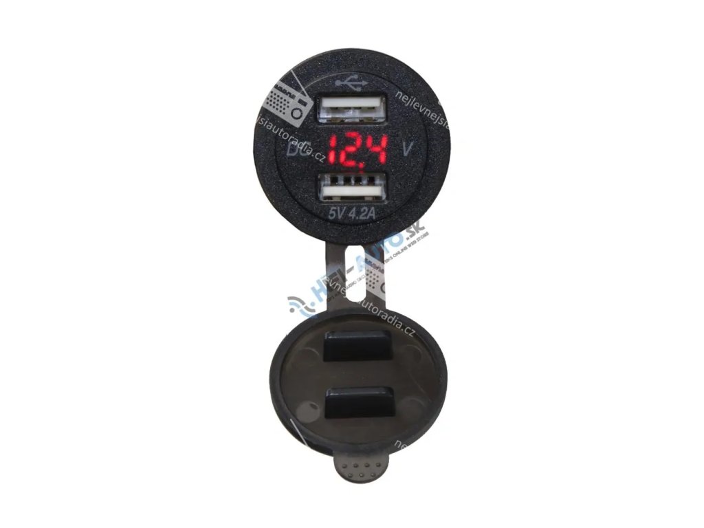 2x USB nabíječka s voltmetrem do panelu, s krytkou proti prachu a vlhkosti, červený LED displej.