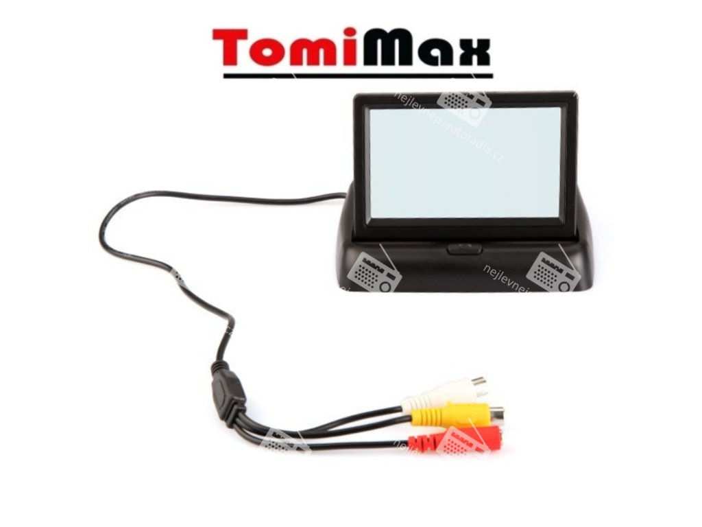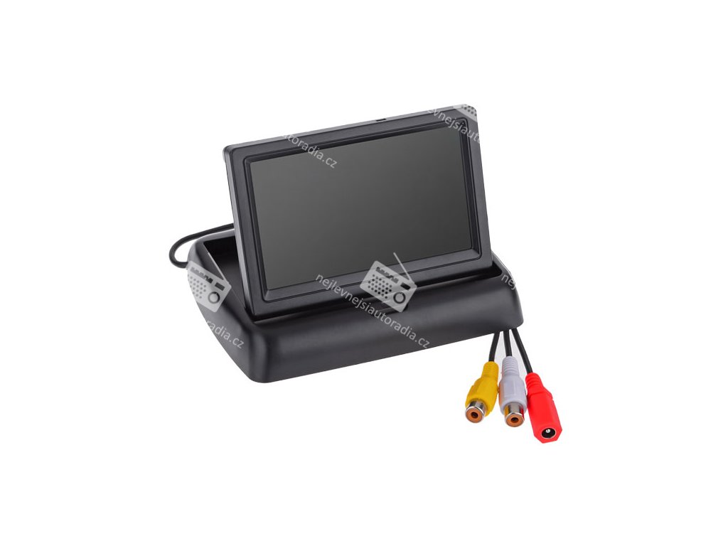 Vyklápěcí 4,3 palcový monitor do automobilu. Disponuje dvěma video výstupy. Monitor je vhodný pro propojení s couvací kamerou, navigací, DVD.