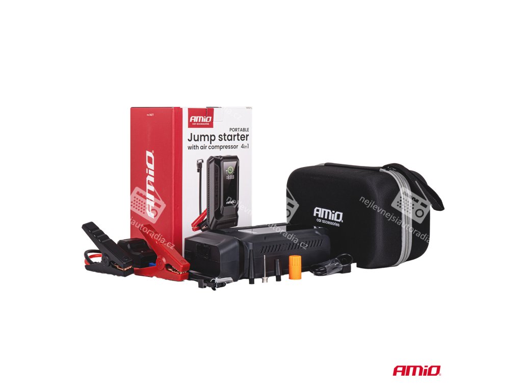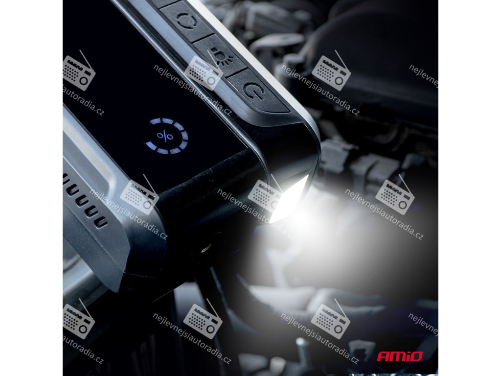 Startovací adaptér AMiO 4 v 1 s kapacitou 12 Ah je profesionální multifunkční zařízení, které kombinuje funkce startovacího adaptéru, powerbanky, vzduchového kompresoru a LED svítidla. Díky vysoké kapacitě baterie a vysokému startovacímu proudu si dobře poradí is nejnáročnějšími podmínkami, a to jak v dílnách, tak při každodenním používání řidiči.