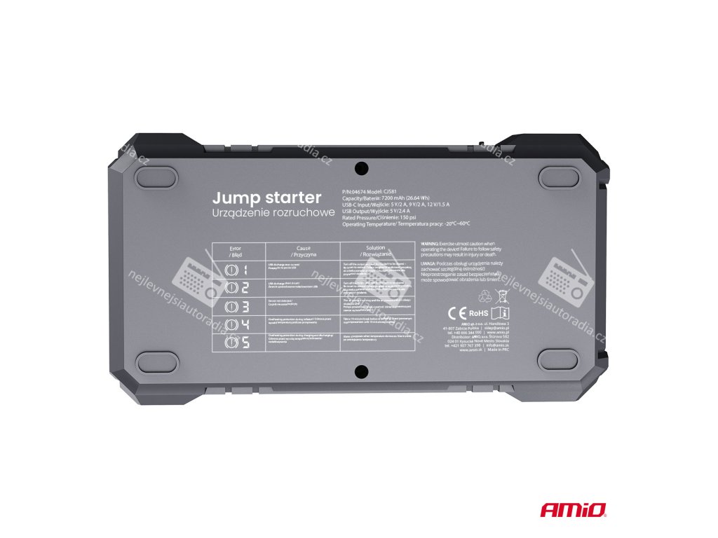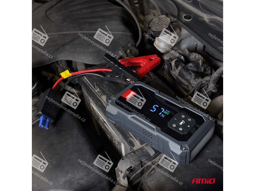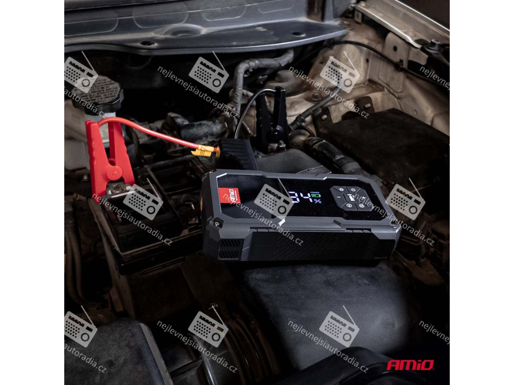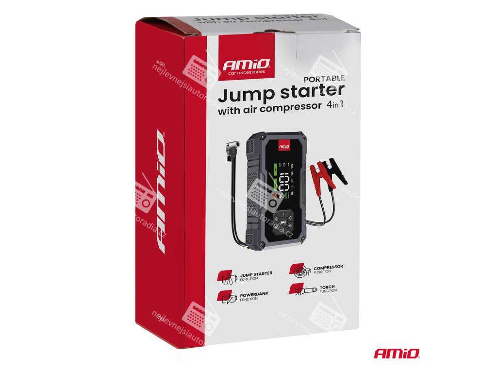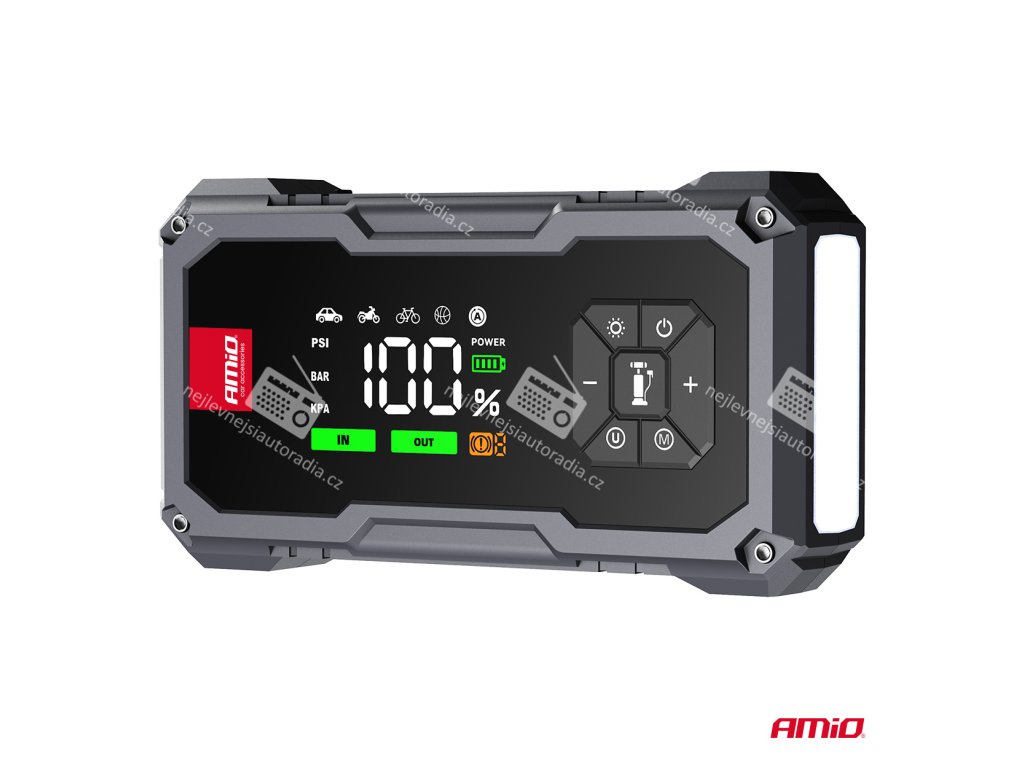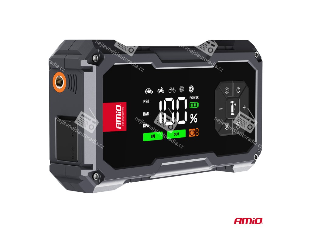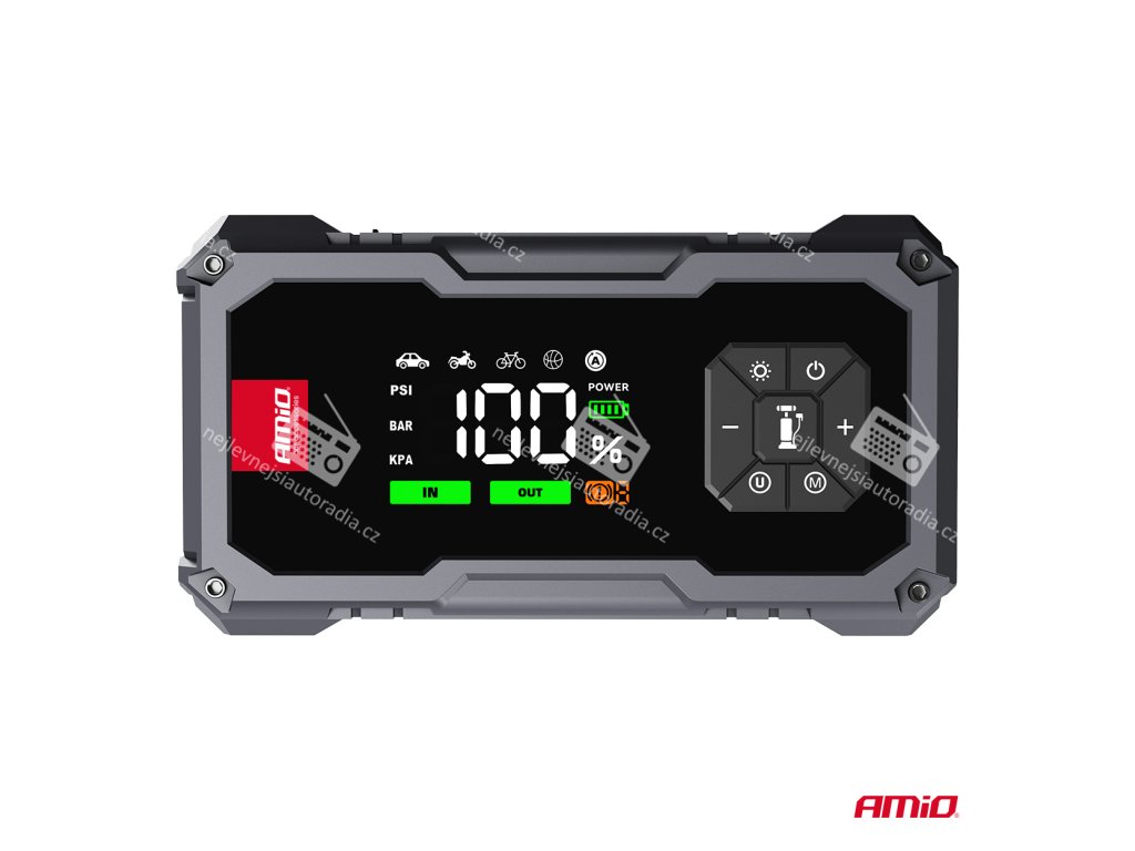 Startovací adaptér AMiO 4 v 1 je multifunkční zařízení určené pro dílny, servisní střediska a individuální uživatele. Kombinuje funkce startovacího adaptéru, vzduchového kompresoru, powerbanky a LED svítilny, díky čemuž je spolehlivým řešením pro nouzové situace i každodenní použití.
