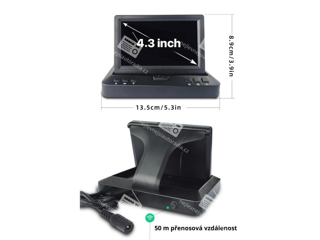 • Funkce monitoru: 4,3palcový monitor poskytuje nejen výborný obraz, ale i pomocné trajektorie pro zjednodušení parkování a manévrování vozidla.