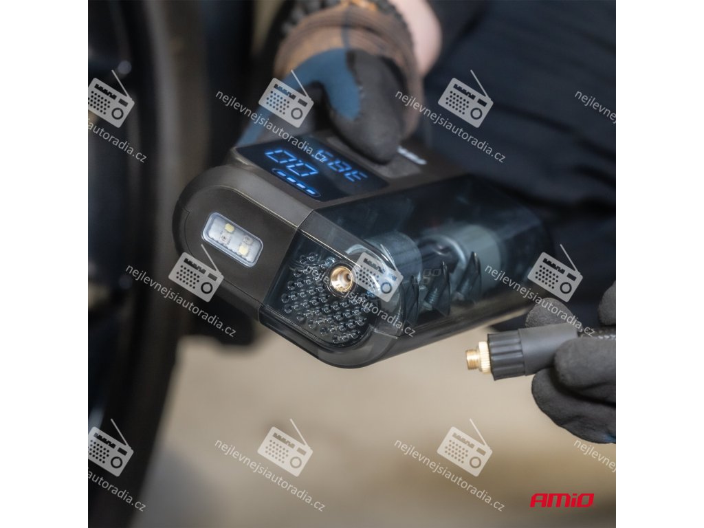 Vybaven digitálním LED displejem umožňuje přesné nastavení a kontrolu tlaku. Zabudovaná LED baterka usnadňuje používání zařízení po setmění a funkce powerbanky umožňuje v případě potřeby nabít chytrý telefon nebo jiná mobilní zařízení.