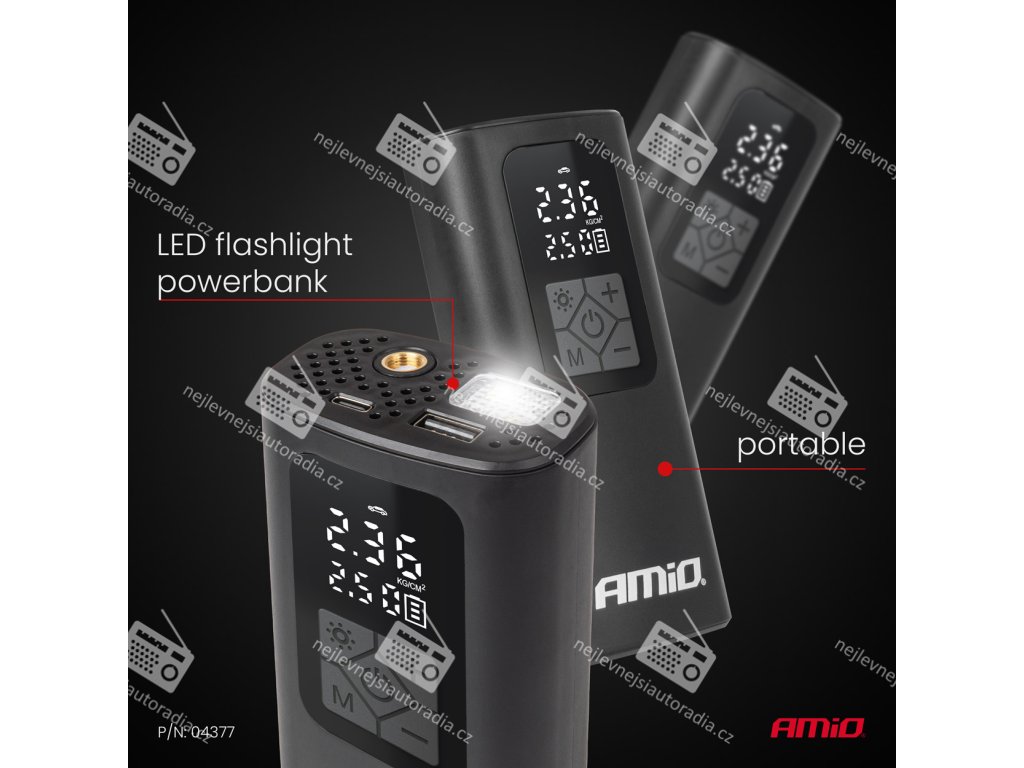 Je vybaven digitálním LED displejem, díky kterému můžete přesně nastavit a kontrolovat tlak. Zabudovaná LED baterka usnadňuje používání zařízení po setmění a funkce powerbanky umožňuje v případě potřeby nabíjet chytrý telefon nebo jiná mobilní zařízení.