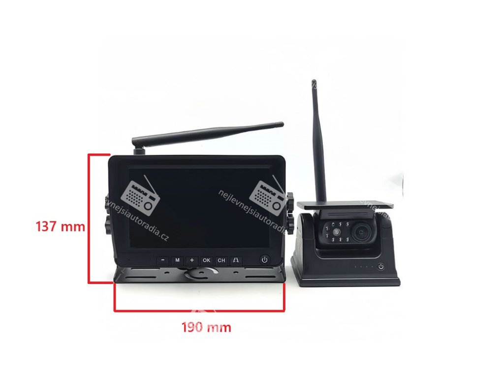 Bezdrátový přenos mezi kamerou a monitorem – jednoduchá instalace bez tahání kabelů.