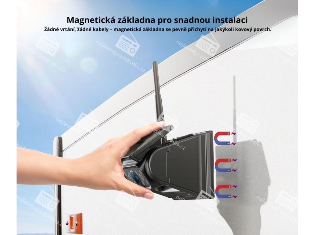 ● Magnetická základna – snadné uchycení kamery bez vrtání.