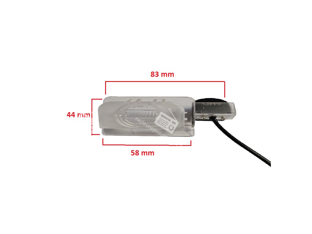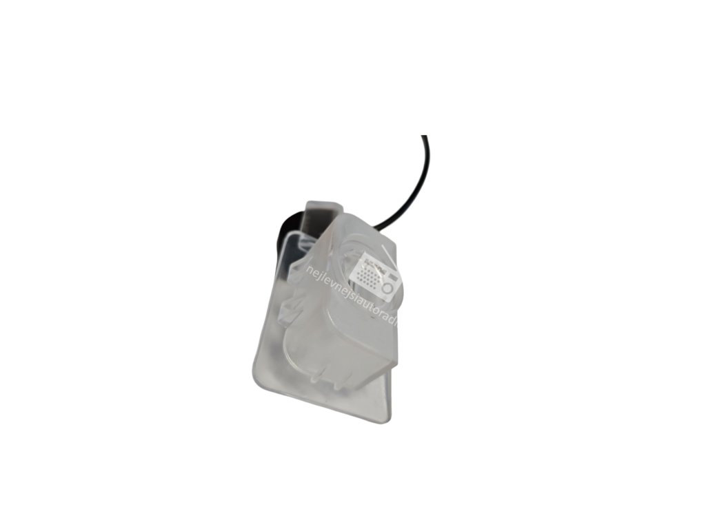 Barevná couvací kamera s nočním viděním pro nahrazení osvětlení SPZ. Je určena pro zabudování do osvětlení nad zadní registrační značku. Jednoduše se vymění za původní osvětlení EVČ. Kamera zároveň zobrazuje pomocné trajektorie pro parkování. Výhodou kamery je zabudované noční vidění. Pro originální design zapadne přímo na určený model automobilu. Disponuje velkým 170° úhlem. Video signál z kamery je vyveden na 6m kabelu s RCA koncovkami.