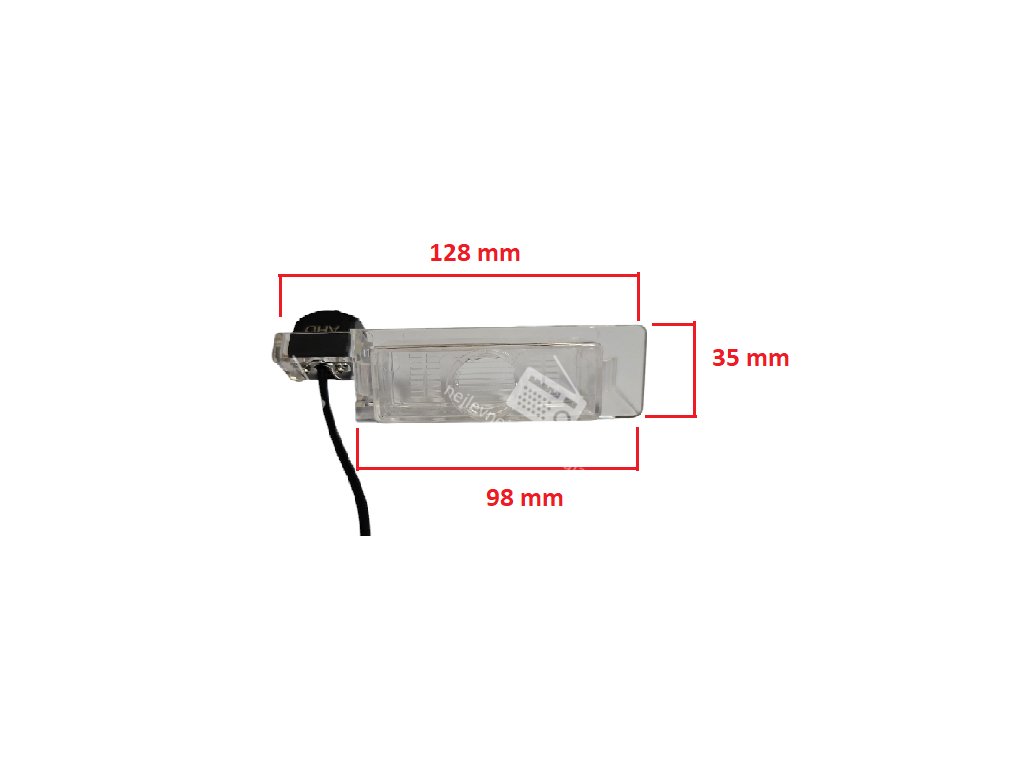 Barevná couvací kamera s nočním viděním pro nahrazení osvětlení SPZ. Je určena pro zabudování do osvětlení nad zadní registrační značku. Jednoduše se vymění za původní osvětlení EVČ. Kamera zároveň zobrazuje pomocné trajektorie pro parkování. Výhodou kamery je zabudované noční vidění. Pro originální design zapadne přímo na určený model automobilu. Disponuje velkým 170° úhlem. Video signál z kamery je vyveden na 6m kabelu s RCA koncovkami.