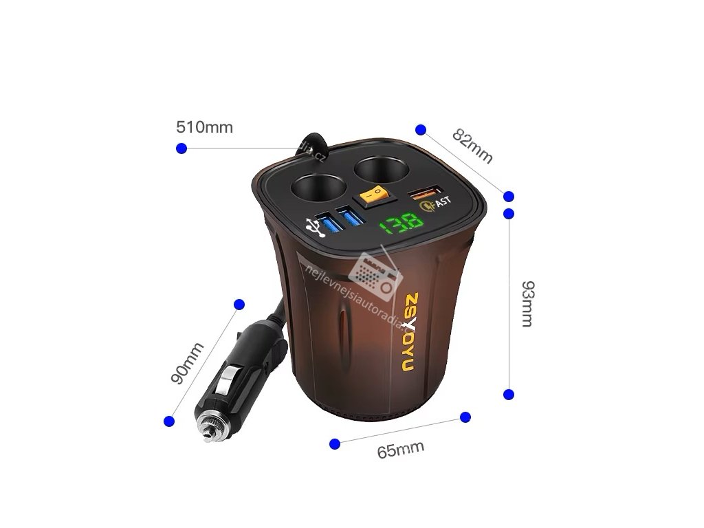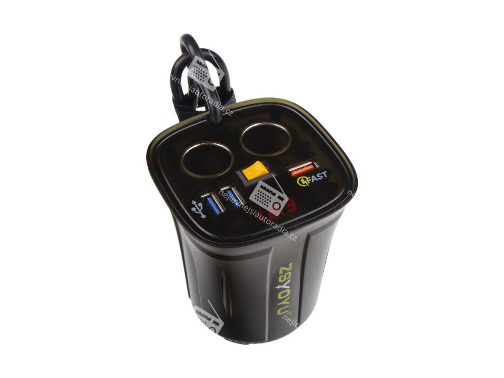 Dvojitá CL zásuvka s 3x USB+voltmetrem do držáku nápojů