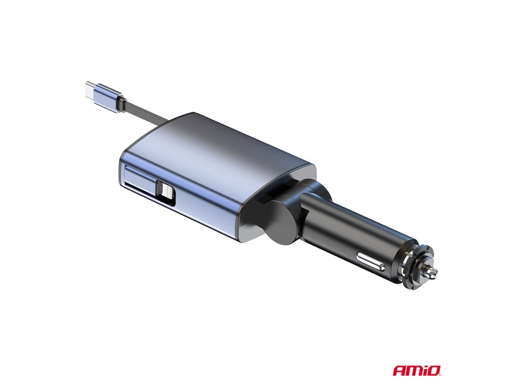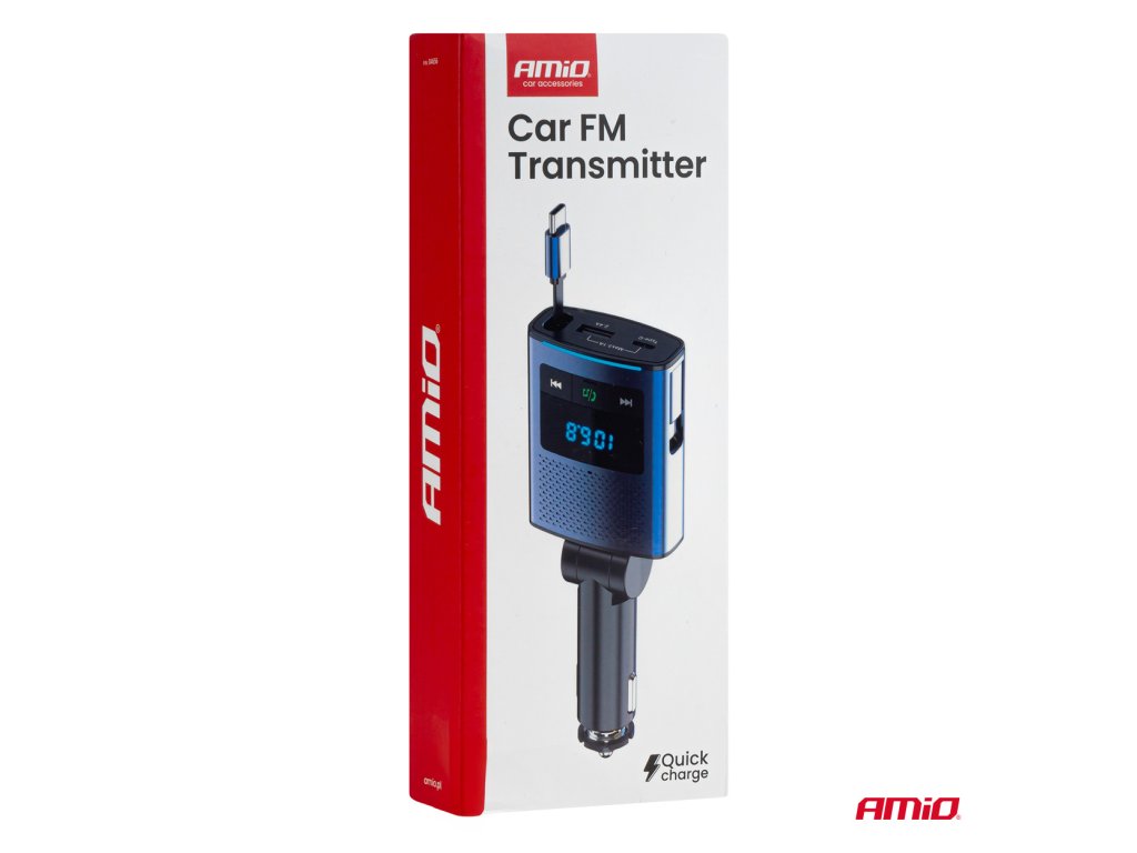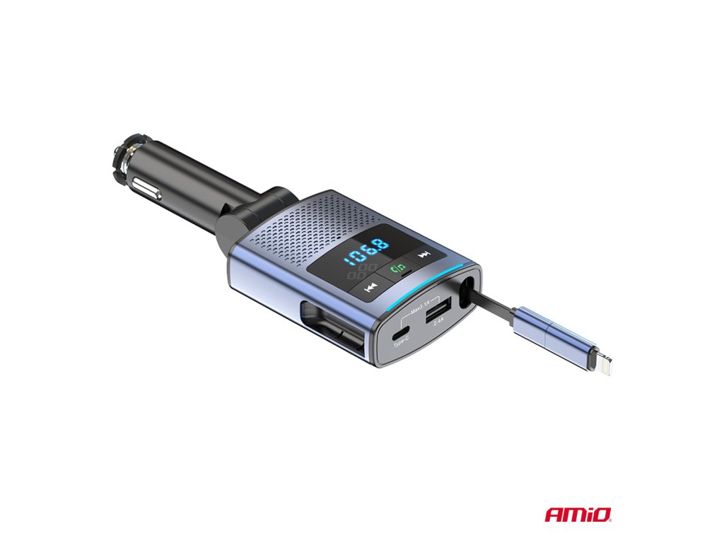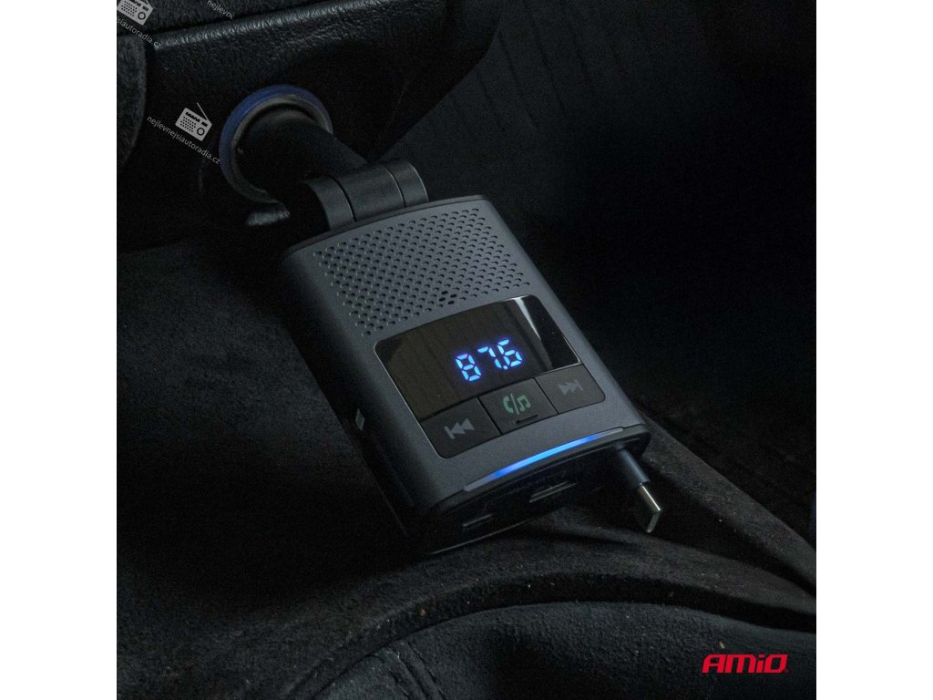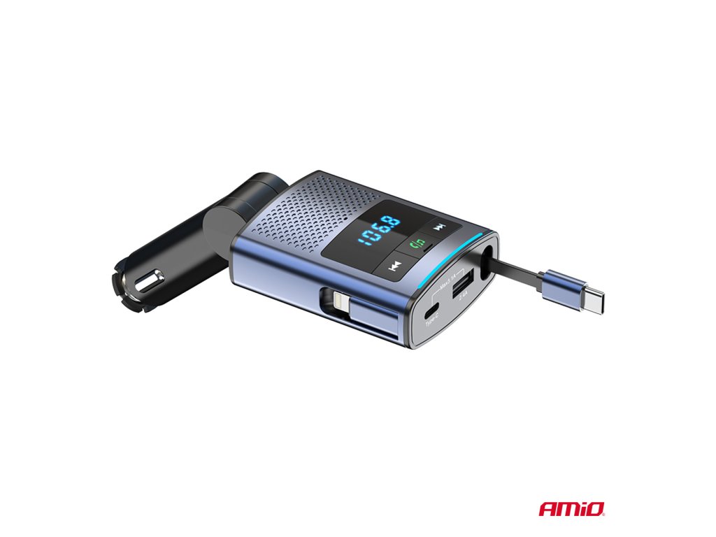 Multifunkční FM transmitér s Bluetooth modulem a vestavěným, vysouvacím USB-C kabelem, který usnadňuje nabíjení zařízení bez potřeby používání dalších vodičů. Umožňuje přehrávání hudby a vedení telefonických hovorů v režimu hands-free.