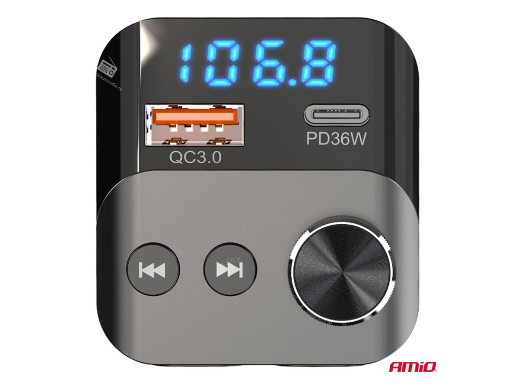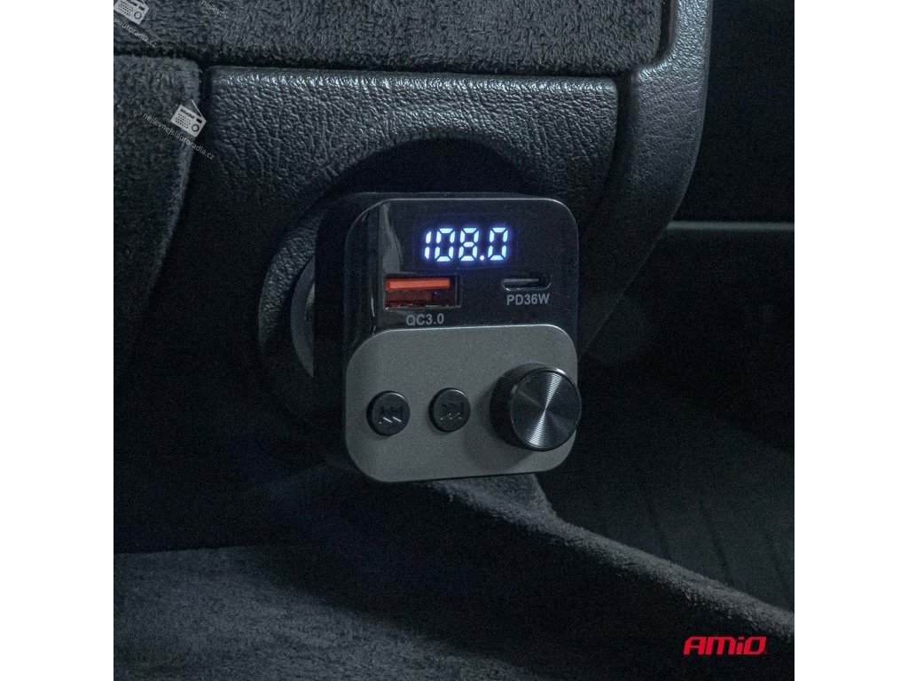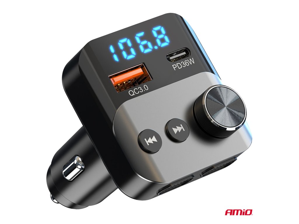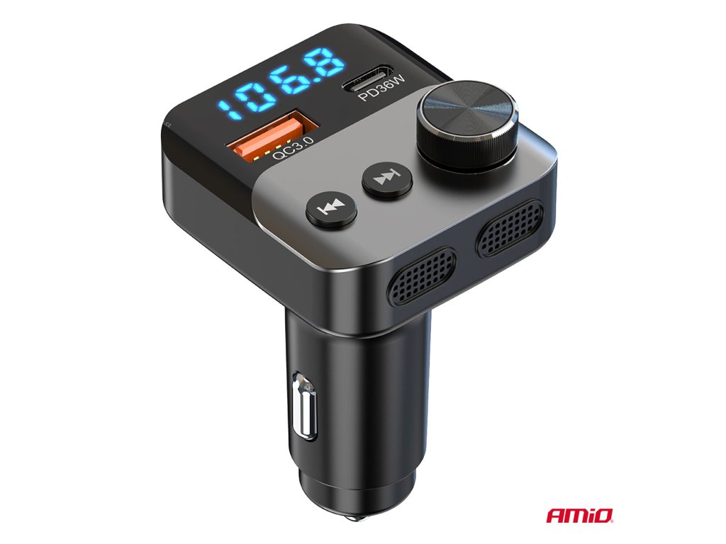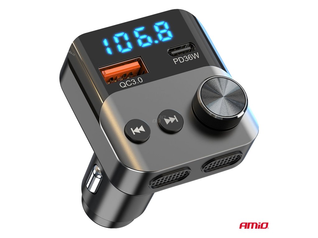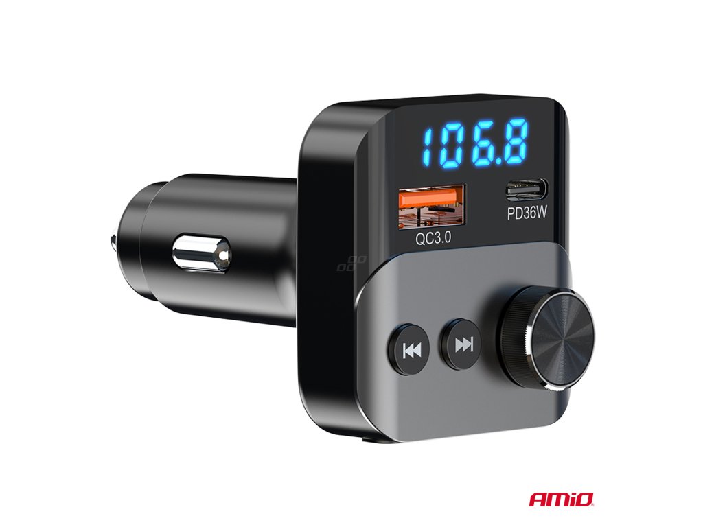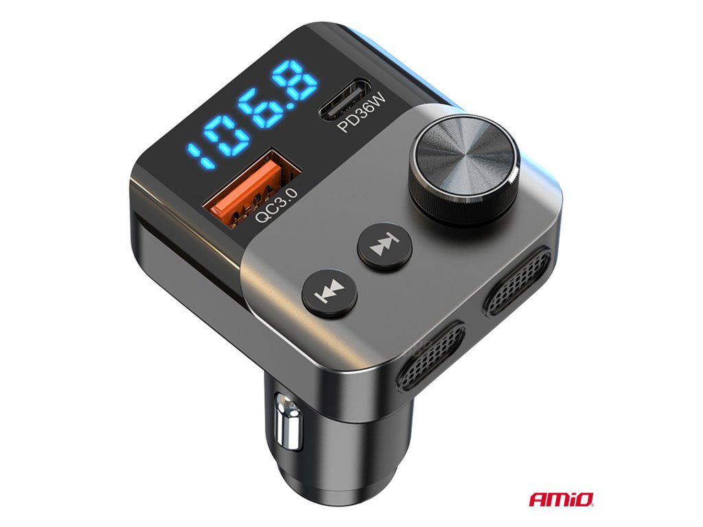Multifunkční FM vysílač, který vám umožňuje přehrávat hudbu a telefonovat v autě bez vestavěného modulu Bluetooth. Zařízení se připojuje k telefonu přes Bluetooth a streamuje zvuk do vašeho FM rádia.
