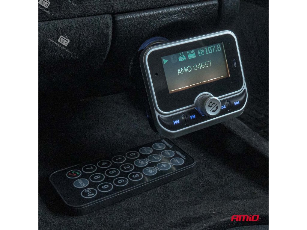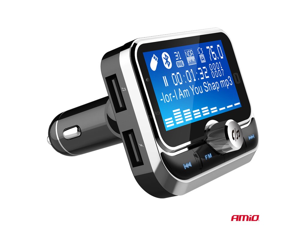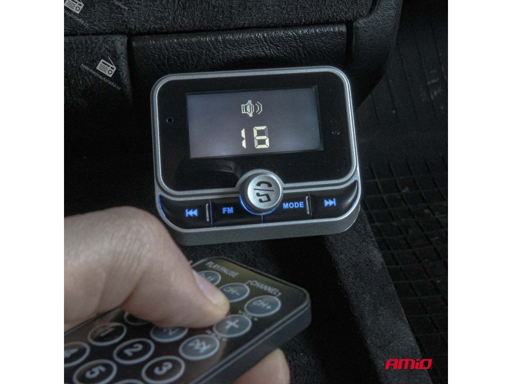 Multifunkční FM transmitter s Bluetooth modulem a dálkovým ovládáním, který umožňuje bezdrátové přehrávání hudby, telefonování v režimu hands-free a nabíjení mobilních zařízení. Ideální pro auta bez zabudované Bluetooth funkce.
