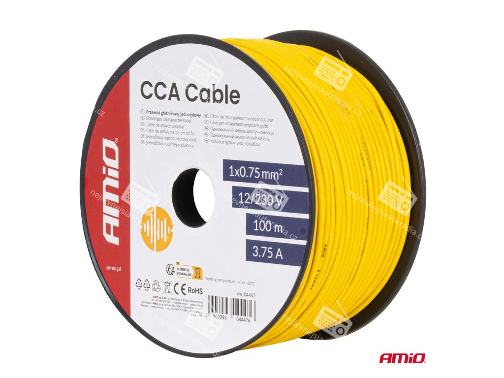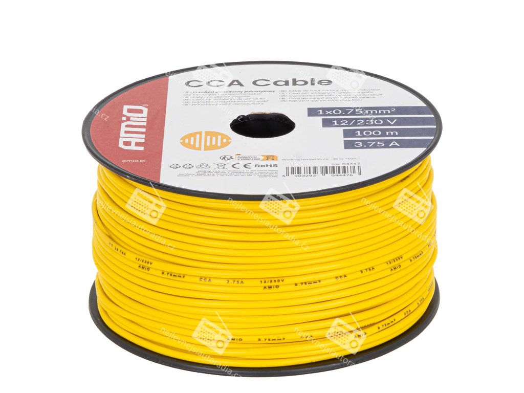 Jednožilový kabel žlutý CCA 1x0,75 mm2 100m 3,75A 12/230V
