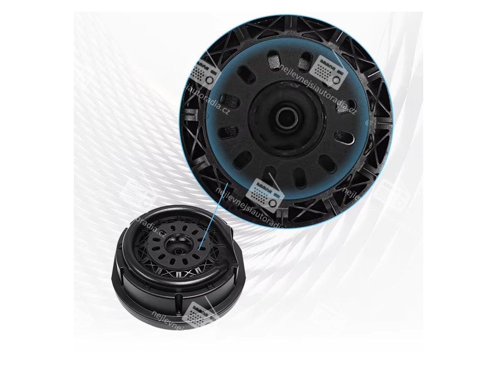 Díky svému tvaru a integrovanému zesilovači poskytuje výrazné zlepšení basové složky zvuku, aniž by zabíral cenný prostor v zavazadlovém prostoru.