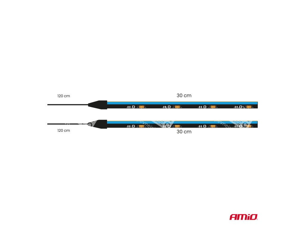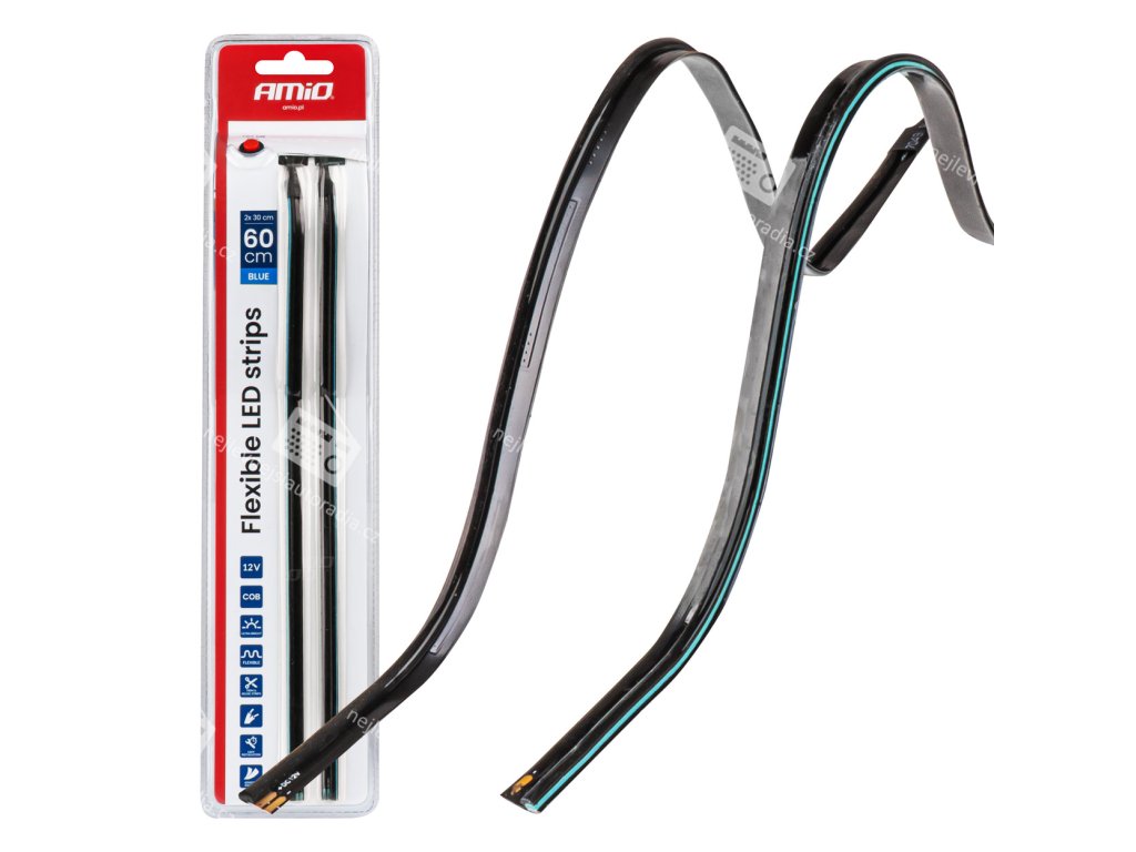 Flexibilní LED pásky pro boční aplikace, napájené 12V. Sada obsahuje dva 30cm pásky vyzařující intenzivní modré světlo. Flexibilní design umožňuje snadné přizpůsobení tvaru montážní plochy. Vestavěná funkce „vyzkoušejte mě“ umožňuje rychlou kontrolu provozu a usnadňuje prezentaci v místě prodeje.
