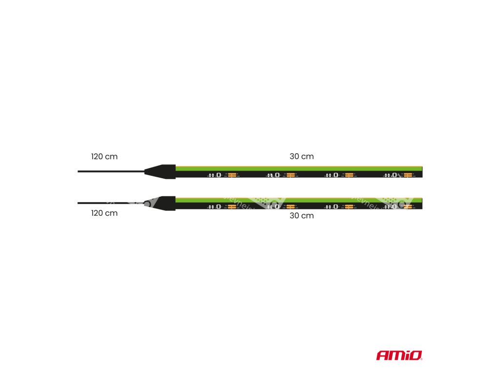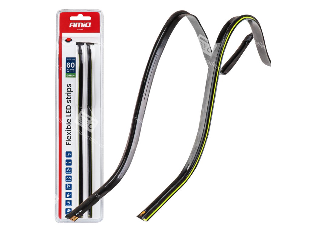Flexibilní LED pásky pro boční aplikace, napájené 12V. Sada obsahuje dva 30cm pásky vyzařující intenzivní zelené světlo. Flexibilní design umožňuje snadné přizpůsobení tvaru montážní plochy. Vestavěná funkce „vyzkoušejte mě“ umožňuje rychlou kontrolu provozu a usnadňuje prezentaci v místě prodeje.