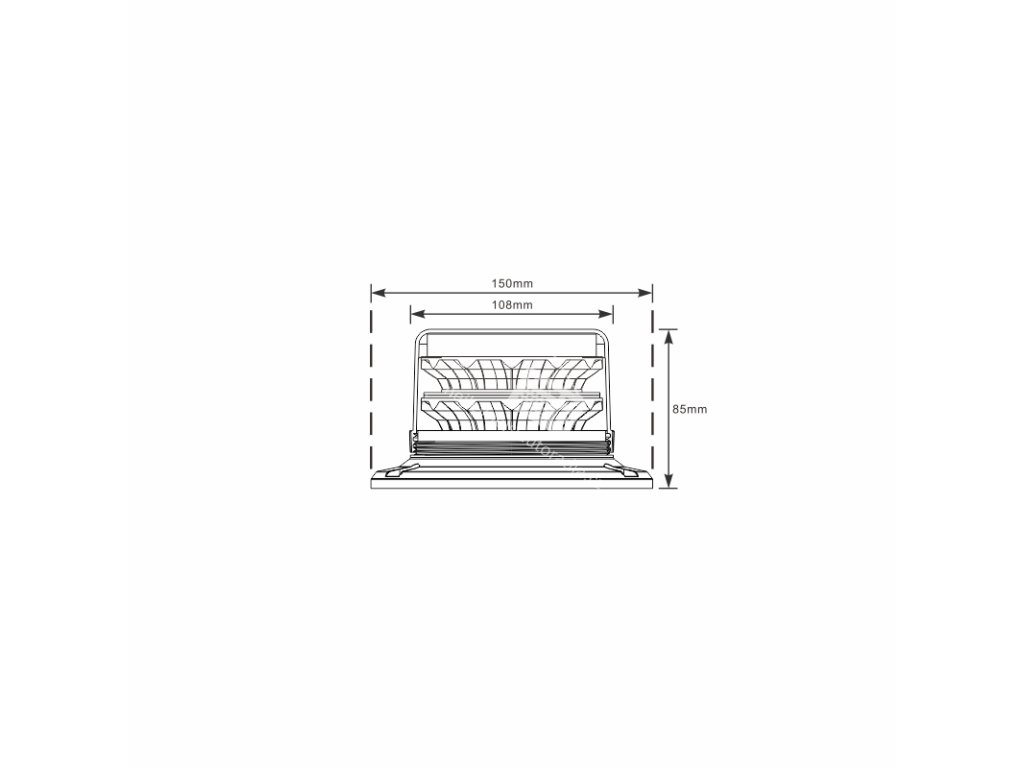 rozměry: průměr základny 150 mm, průměr krytu 108 mm, výška 85 mm