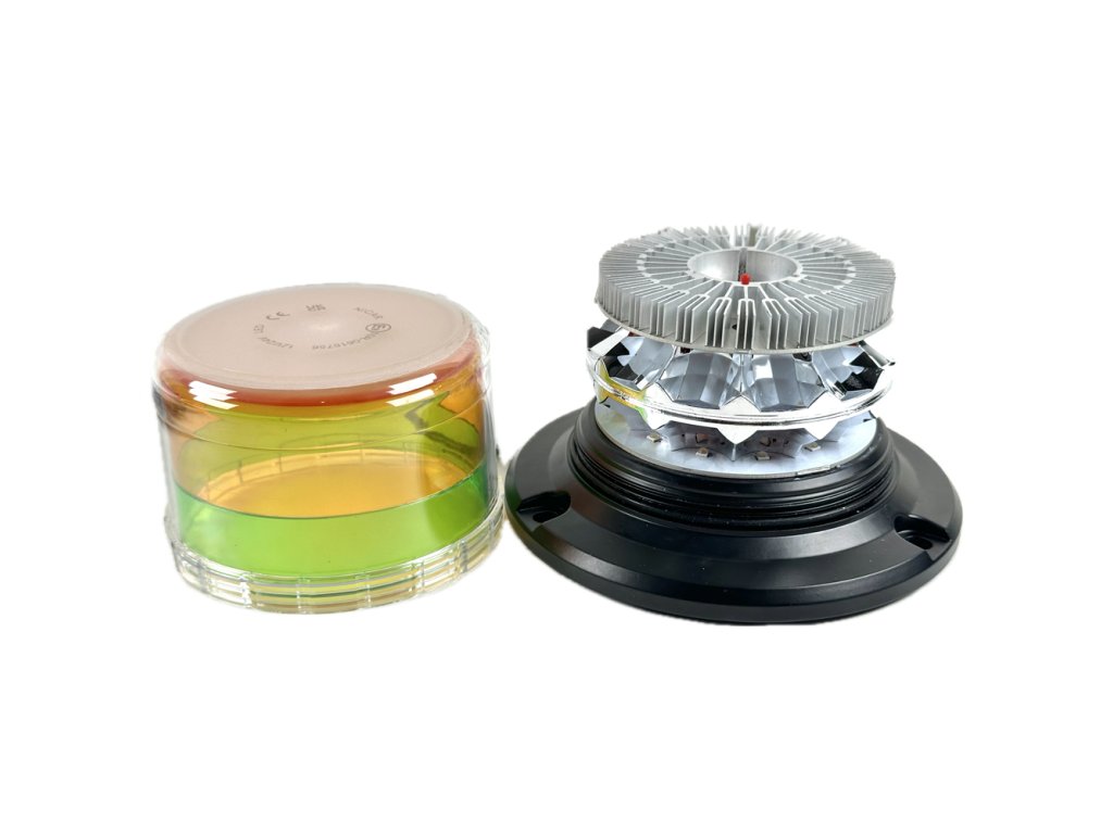 3 režimy výstražného blikání, včetně otočného režimu ( přepínání tlačítkem uvnitř majáku)