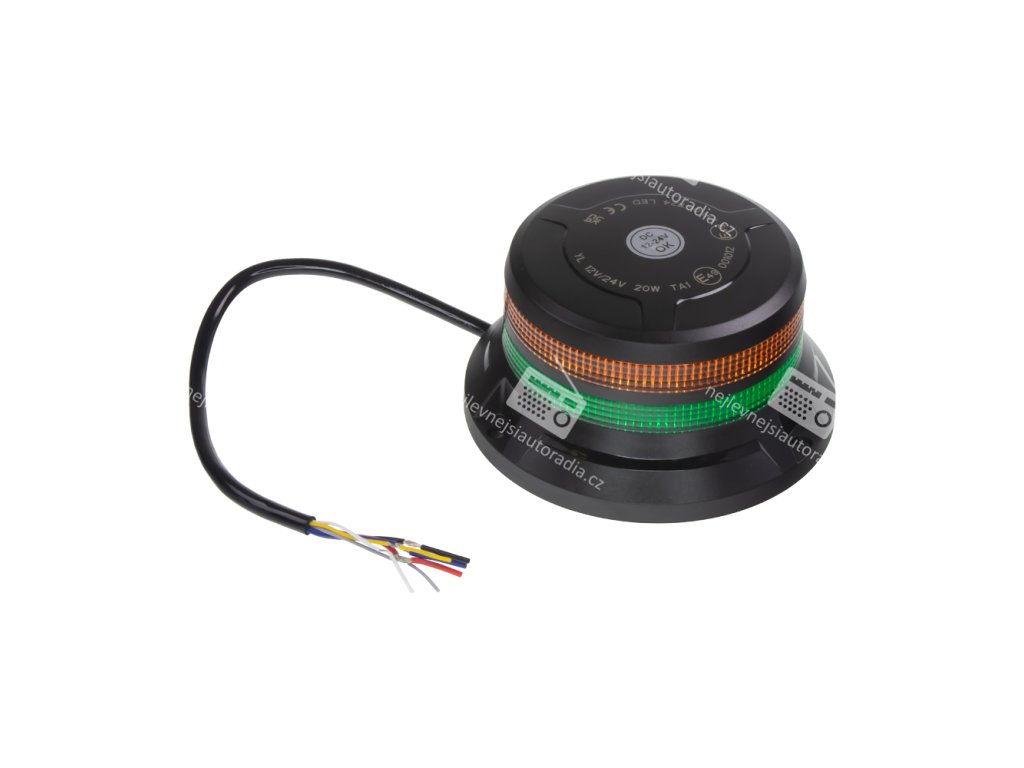 Profesionální zeleno-oranžový LED maják s výrazným výstražným efektem. Určen pro pevnou montáž.