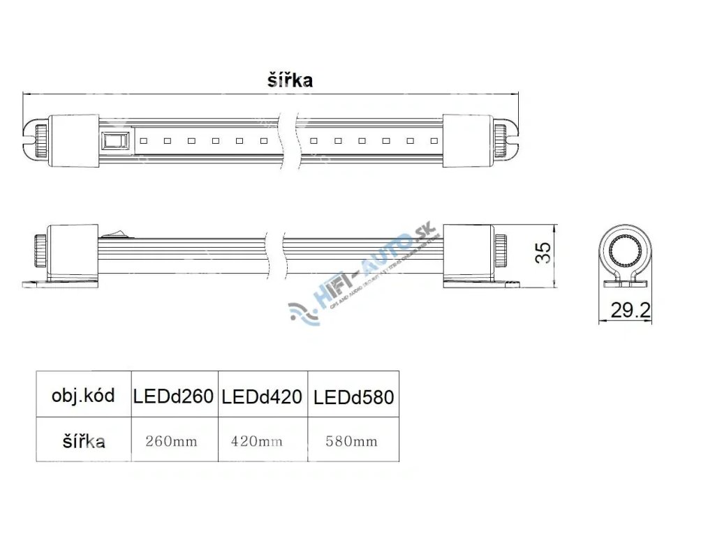 Vnitřní interiérové LED světlo, vhodné do osobních, nákladních vozidel, obytných automobilů , nebo i pro jiné využití.