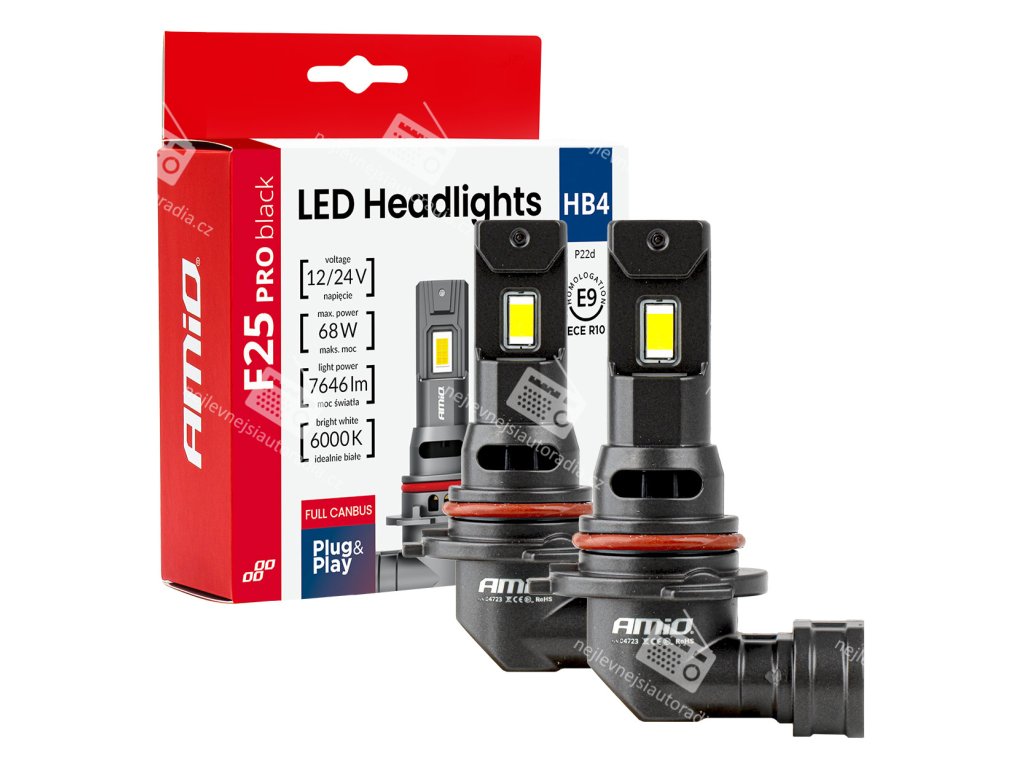 LED světlomety F25 PRO BLACK Edition HB4 12/24V jsou pokročilým zdrojem světla určeným pro automobilové světlomety. Jsou vybaveny systémem FULL CANBUS a zajišťují plnou kompatibilitu se systémy vozidel vybavenými systémem monitorování přepálených žárovek.