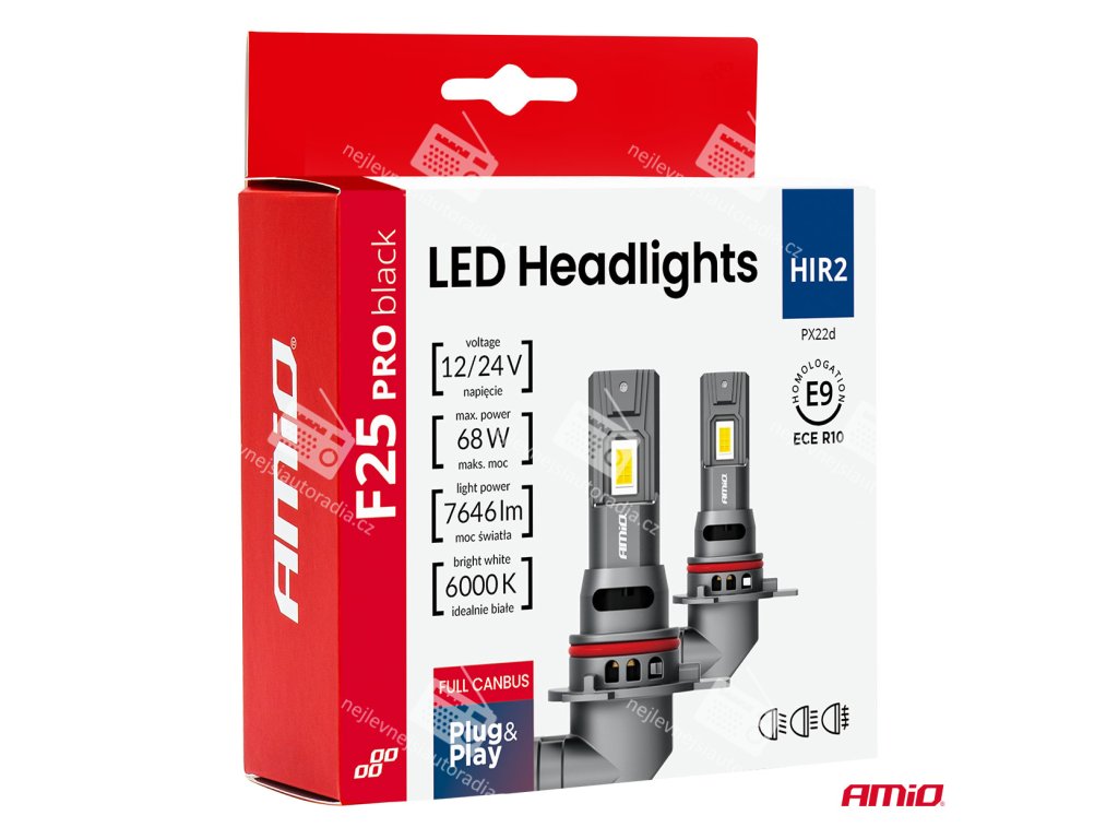 LED světlomety F25 PRO BLACK Edition HIR2 12/24V jsou pokročilým zdrojem světla určeným pro automobilové světlomety. Jsou vybaveny systémem FULL CANBUS a zajišťují plnou kompatibilitu se systémy vozidel vybavenými systémem monitorování přepálených žárovek.