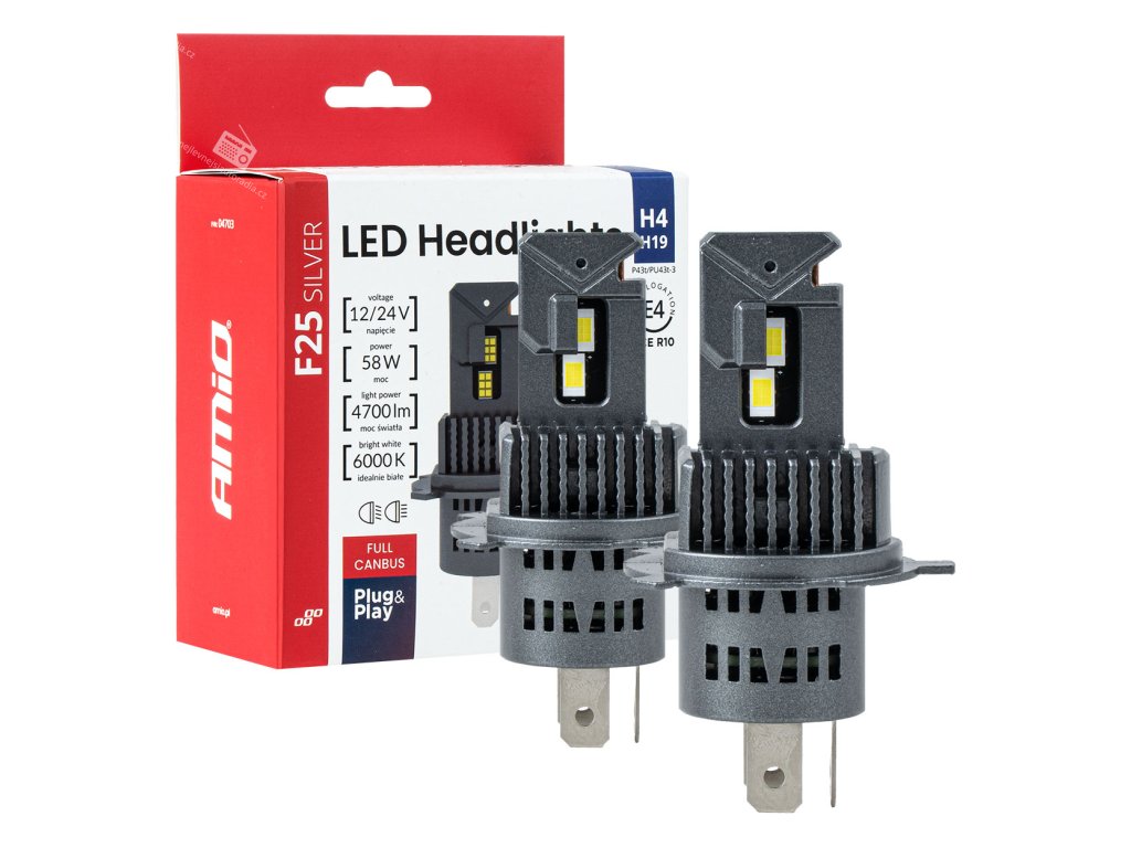 Profesionální LED žárovky určené do předních reflektorů osobních a nákladních vozidel, kompatibilní se systémy H4 a H19. Model F25 SILVER Edition je vybaven technologií FULL CANBUS, která eliminuje hlášení chyby spálené žárovky na přístrojové desce bez potřeby použití dodatečných rezistorů.