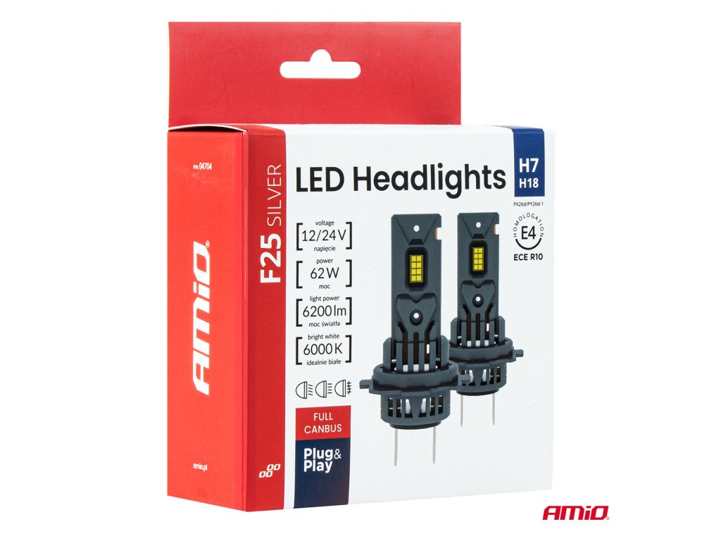 Profesionální LED žárovky určené do předních reflektorů osobních a nákladních vozidel, kompatibilní se systémy H7 a H18. Model F25 SILVER Edition je vybaven technologií FULL CANBUS, která eliminuje chyby spálené žárovky v systému vozidla bez potřeby použití dodatečných rezistorů.