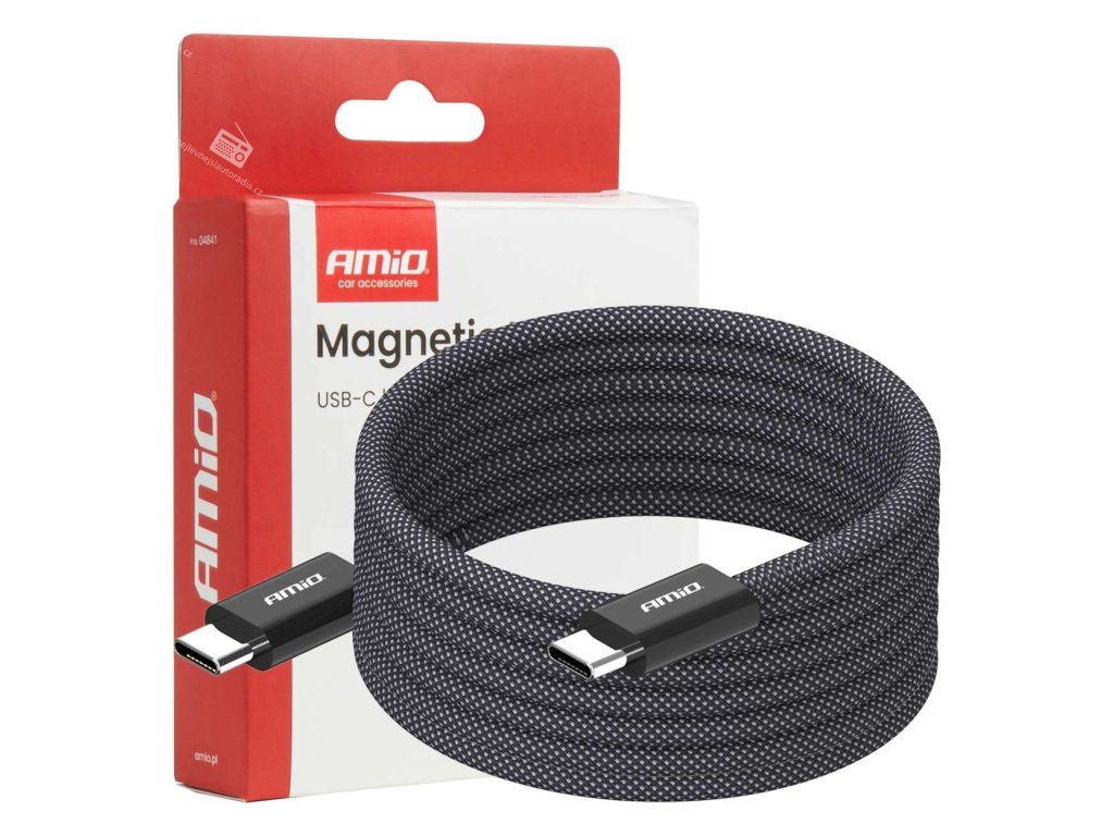 Kabel USB-C na USB-C s magnetickým připojovacím systémem, určený k nabíjení a synchronizaci dat na mobilních zařízeních. Magnetický hrot umožňuje rychlé a pohodlné připojení kabelu a zároveň snižuje opotřebení portu zařízení.