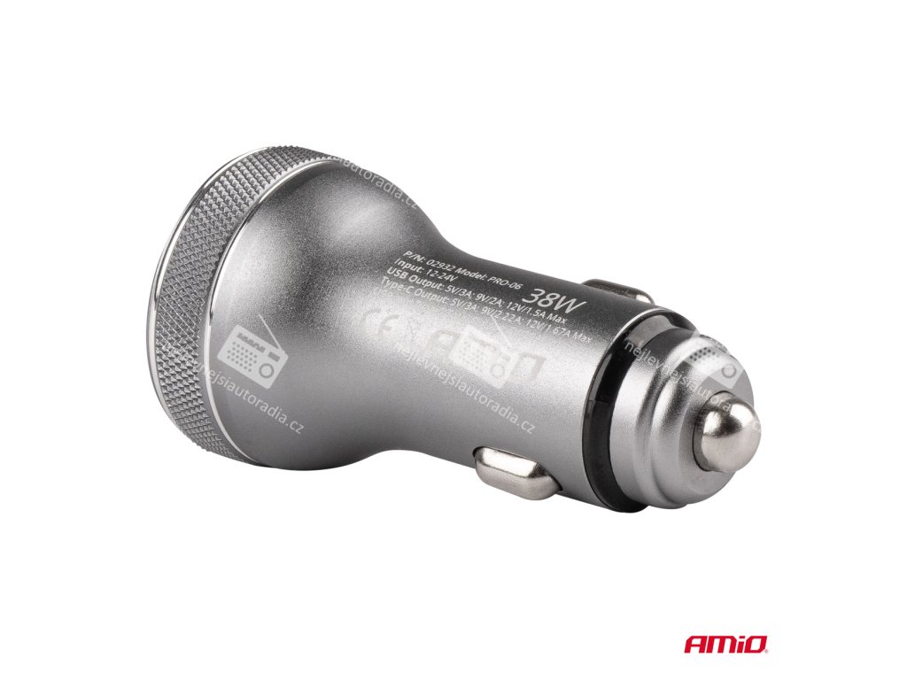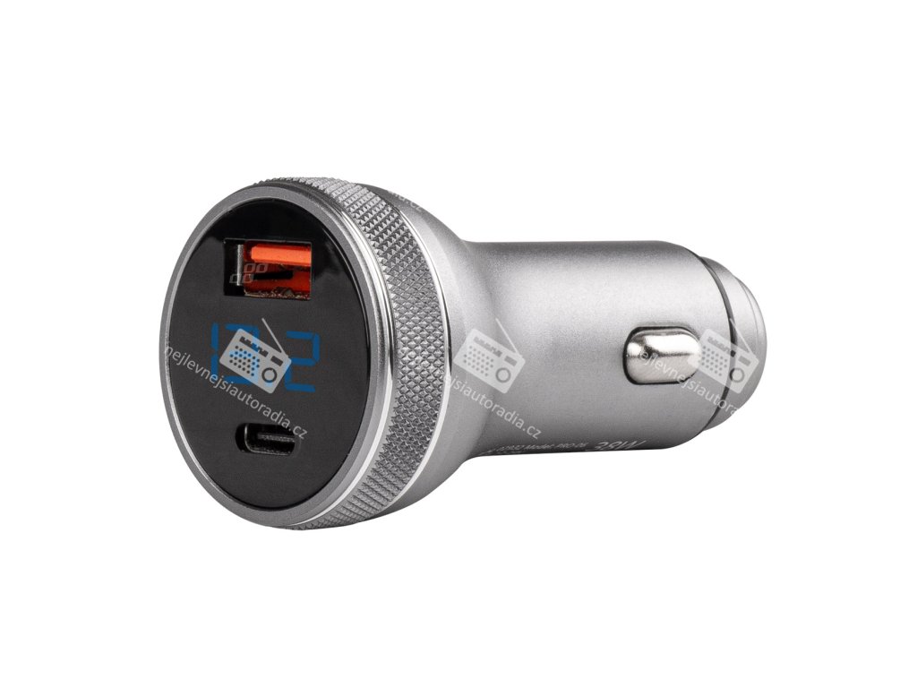 Inteligentní nabíječka do auta (12 V / 24 V), která upravuje napájení v závislosti na nabíjeném zařízení. Umožňuje bezpečné nabíjení bez obav z poškození zařízení. Umožňuje nabíjet dvě zařízení současně.