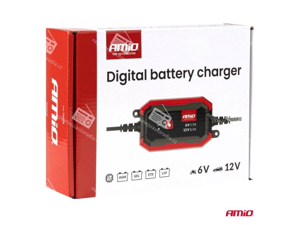 Digitální nabíječka AMiO AGM/GEL/LiFePo4 6/12V je spolehlivé a snadno použitelné zařízení, které zajišťuje bezpečné a efektivní nabíjení baterií, prodlužuje jejich životnost a zajišťuje plnou připravenost vozidla nebo zařízení k provozu.
