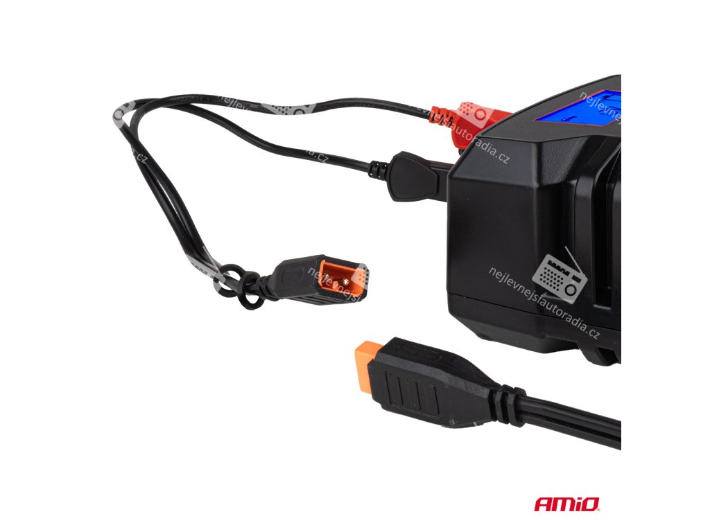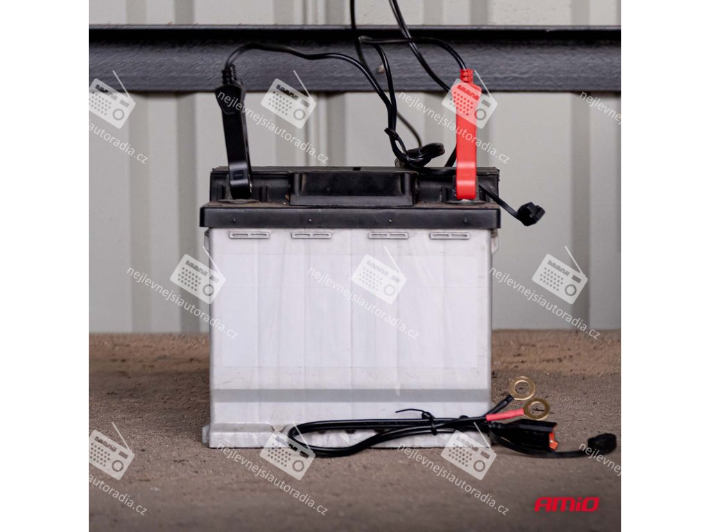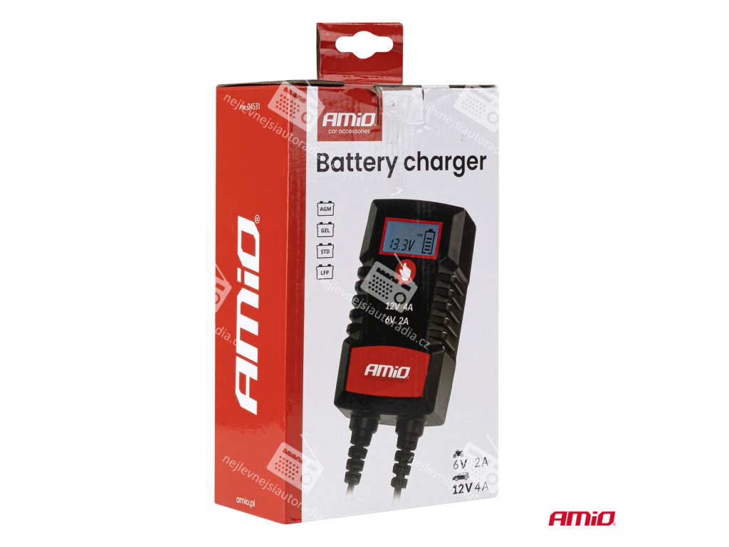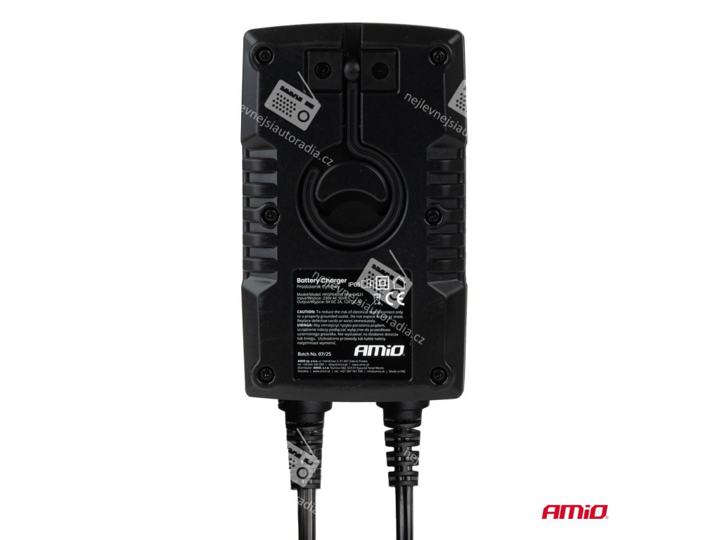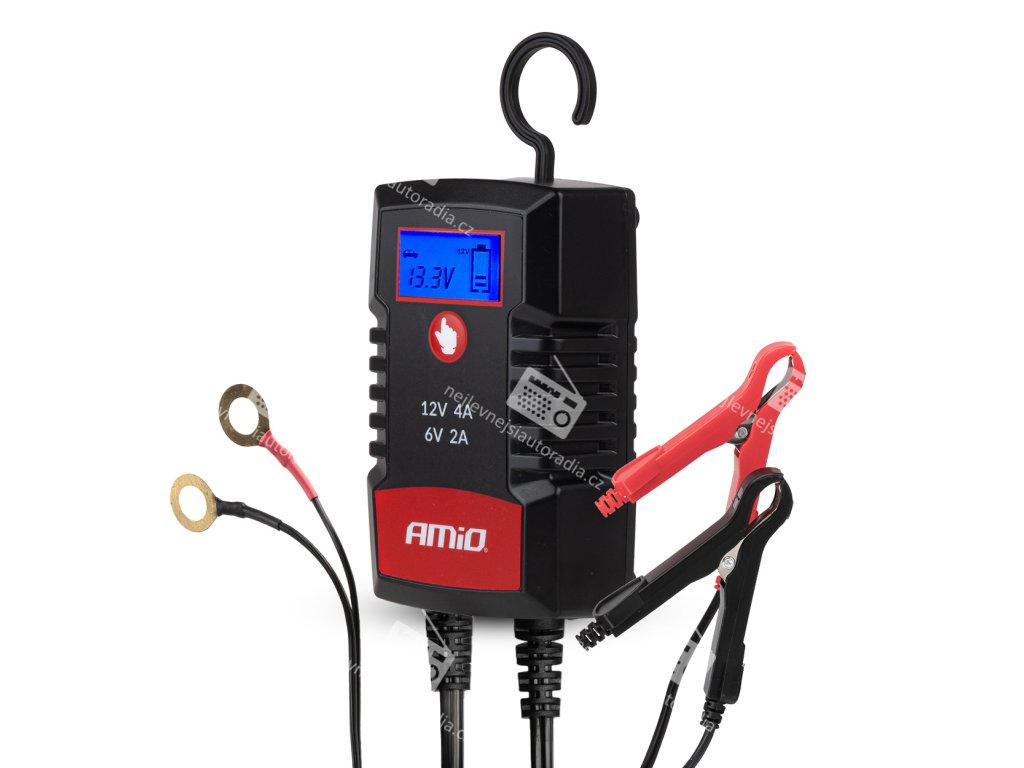 Digitální nabíječka AMiO PRO HOOK je moderní a pohodlné zařízení pro nabíjení baterií AGM, GEL a LiFePo4 (LFP) . S maximálním nabíjecím proudem 4 A a podporou napětí 6 V a 12 V zajišťuje rychlé, bezpečné a efektivní nabíjení baterií v osobních automobilech, motocyklech, lodích a skladových zařízeních. Nabíječka je vybavena funkcí udržování napětí a vestavěným háčkem pro zavěšení pod kapotu. Součástí je rychlokonektor a další očka pro konektory. Je ideální pro nabíjení motocyklových a benzínových baterií osobních automobilů a má také speciální funkci nabíjení baterií LFP.