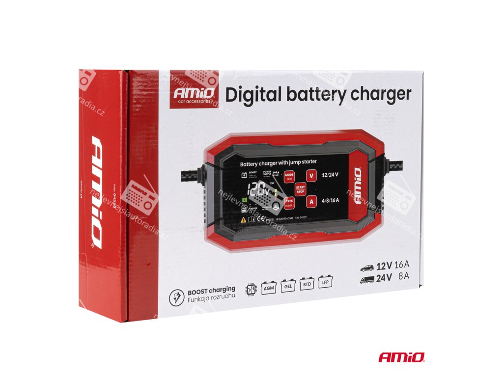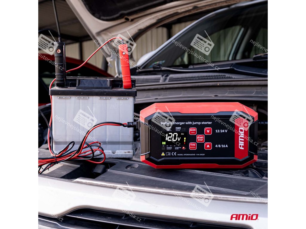 Digitální nabíječka AMiO PRO 12/24V s funkcí startování je zařízení pro náročné uživatele, které zaručuje rychlé, bezpečné a profesionální nabíjení i spolehlivou podporu startu akumulátoru v každé situaci.