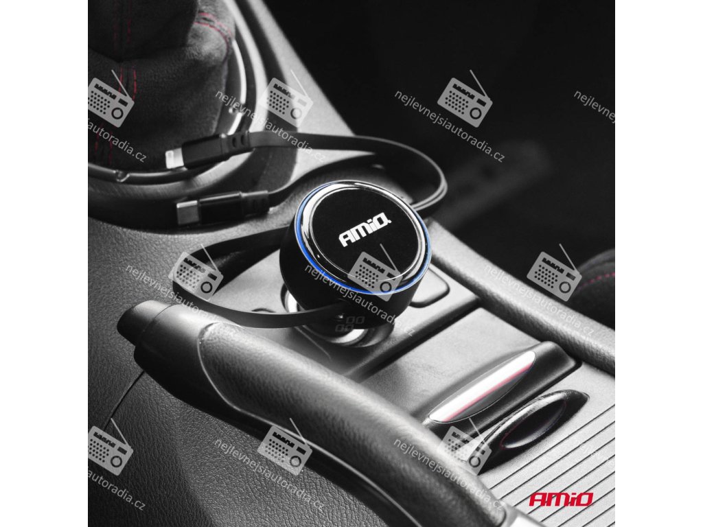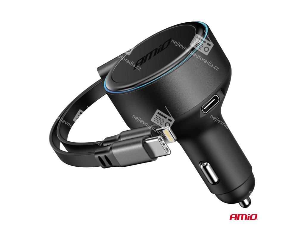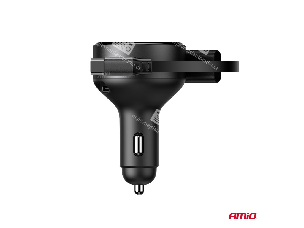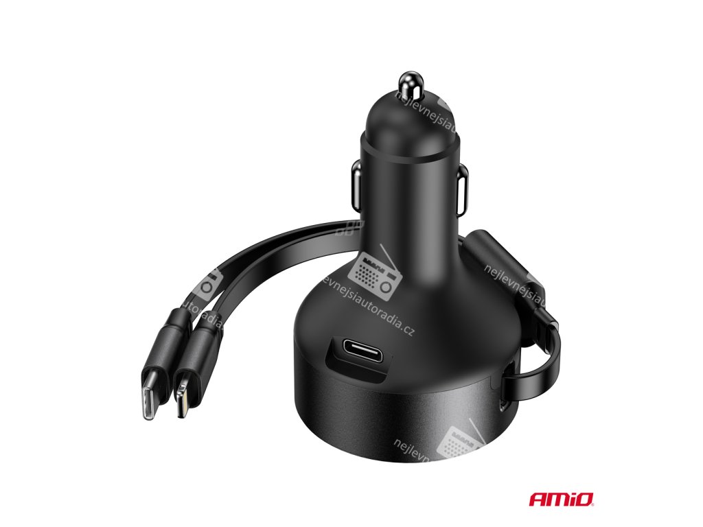 Nabíječka do auta výsuvná C kabel + lightning kabel + USB C