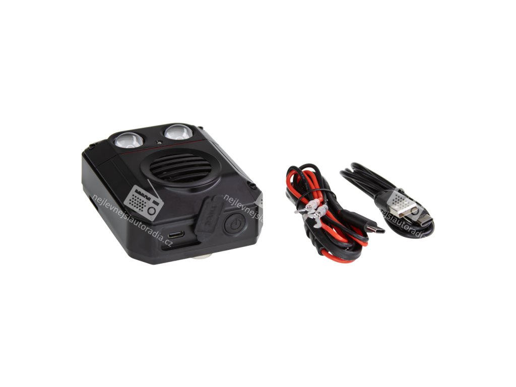 balení obsahuje: 1x plašičku, 2x napájecí kabel (USB / USB-C, USB-C / svorky k autobaterii, 4x stahovací pásky, návod