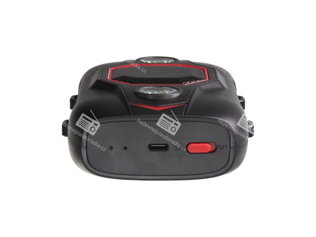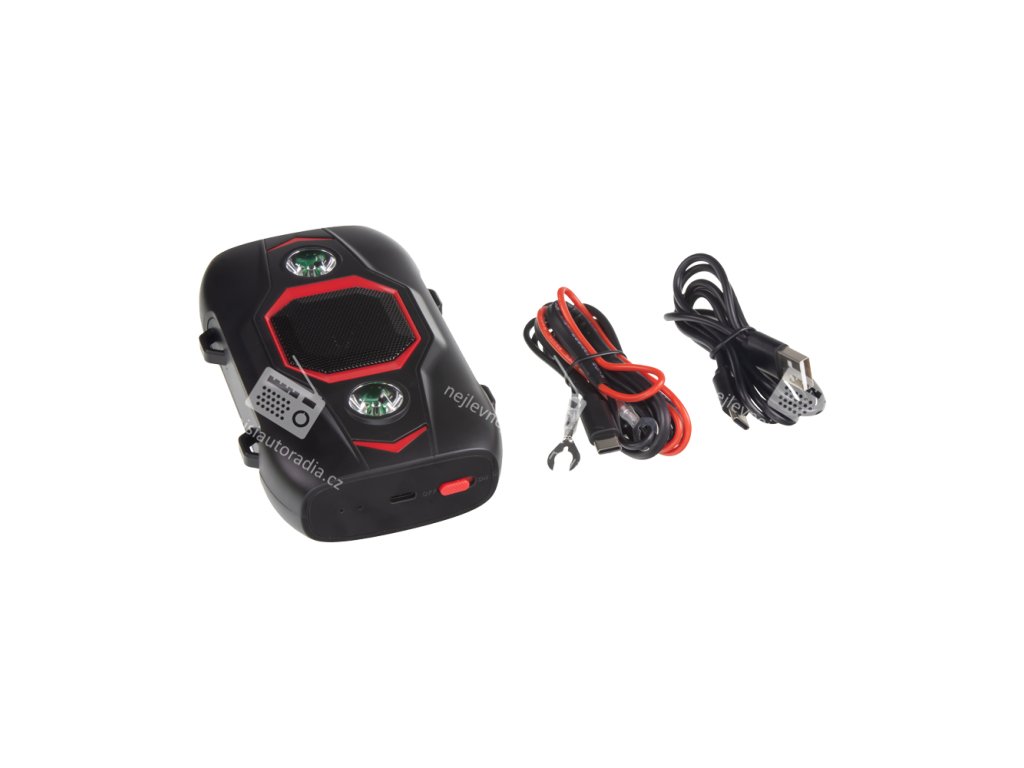 Zařízení je možno napájet ze zásuvky 230V pomocí jakékoliv USB-C nabíječky (není součástí balení), pomocí kabelu z 12V připojení k baterii ve voze, tak i z 4x AA tužkových baterií může se využít např. na půdách či jiných prostorech bez možnosti napájení.
