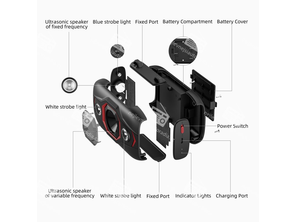 Tento zvuk a blikající světlo je velmi nepříjemné pro hlodavce a kočky, které rychle opustí tímto způsobem chráněný prostor.