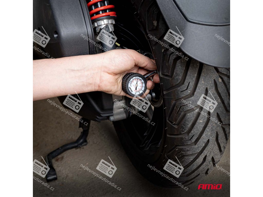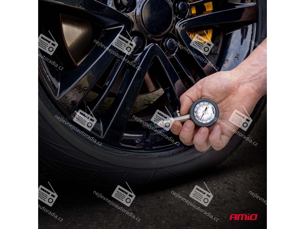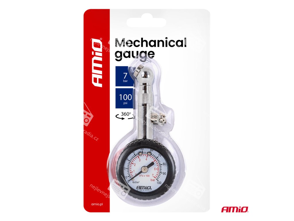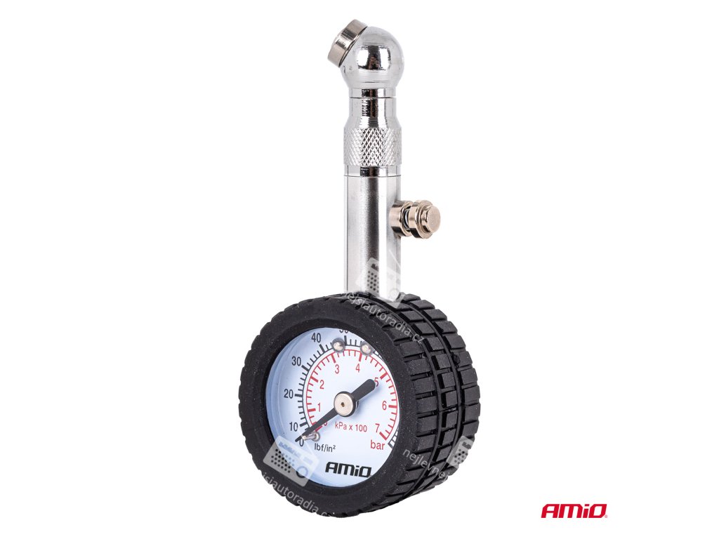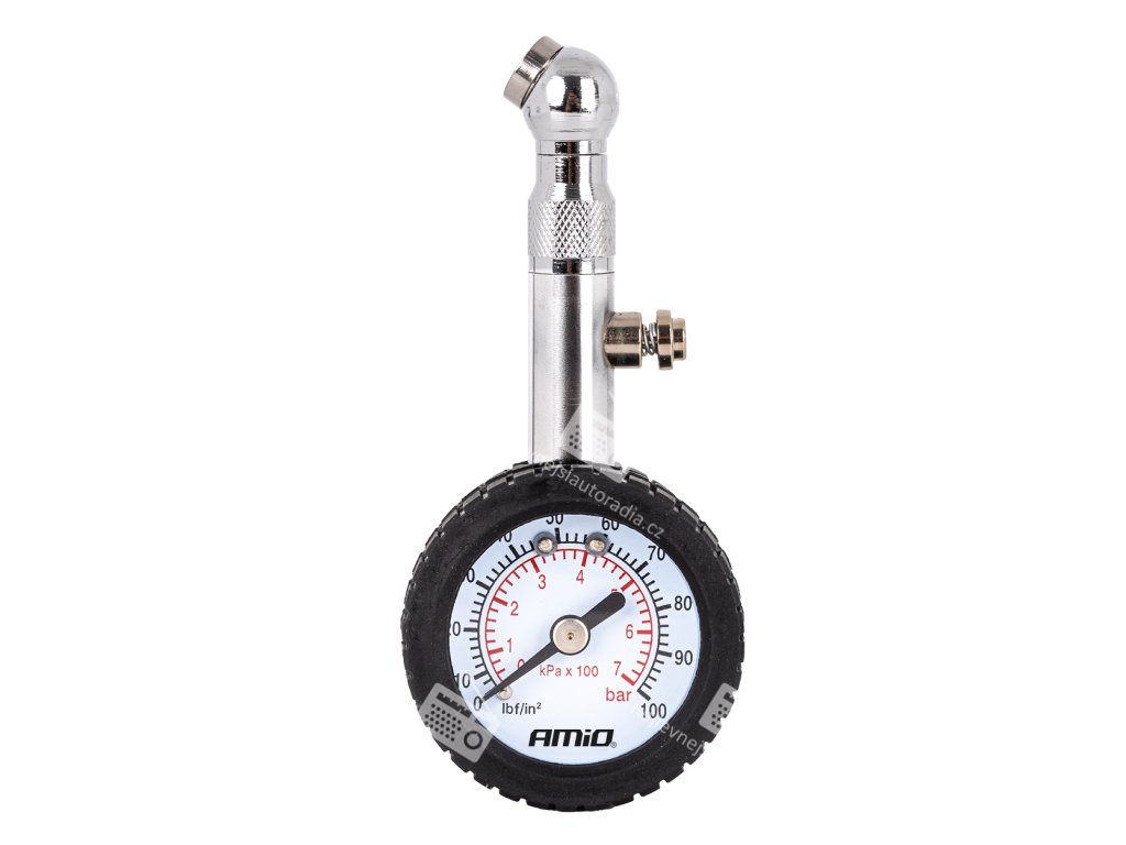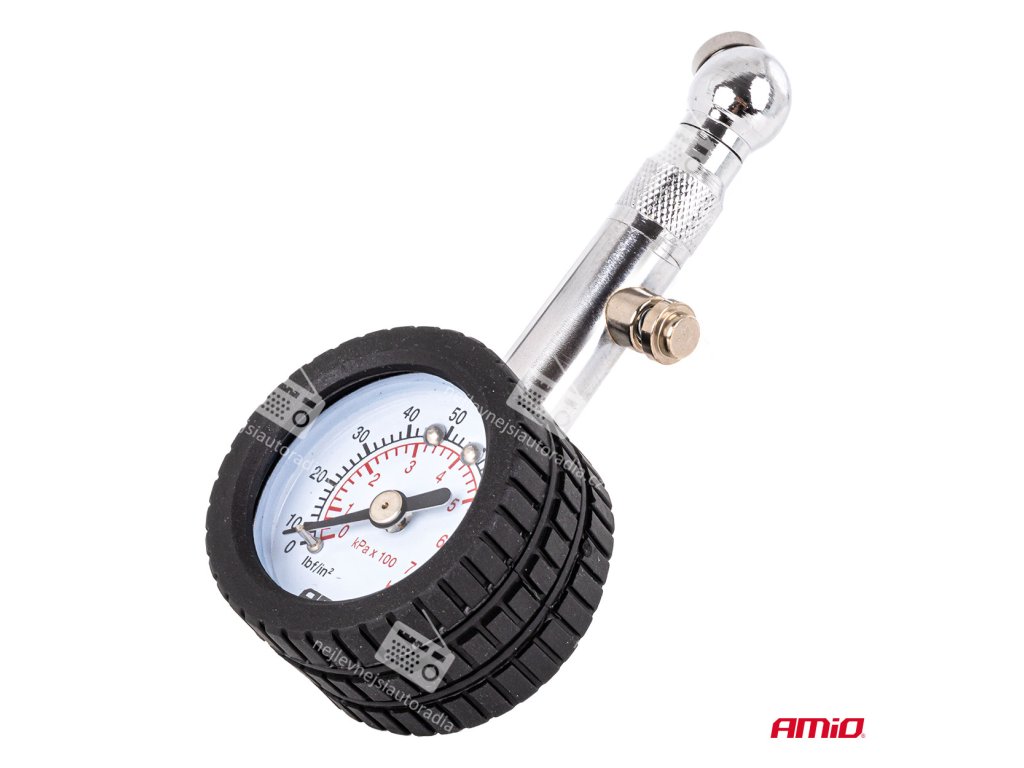 Pneuměřič s otočnou hlavicí a ventilem pro vynulování je kompaktní a funkční nástroj pro kontrolu tlaku v pneumatikách. Měřicí rozsah do 7 barů umožňuje přesná měření u osobních a lehkých užitkových vozidel. Pohyblivá hlavice usnadňuje přístup k ventilům i v obtížně dostupných pozicích a vypouštěcí ventil umožňuje rychlé snížení tlaku bez potřeby odstranění přístroje. Analogová stupnice zaručuje spolehlivost a nevyžaduje napájení.