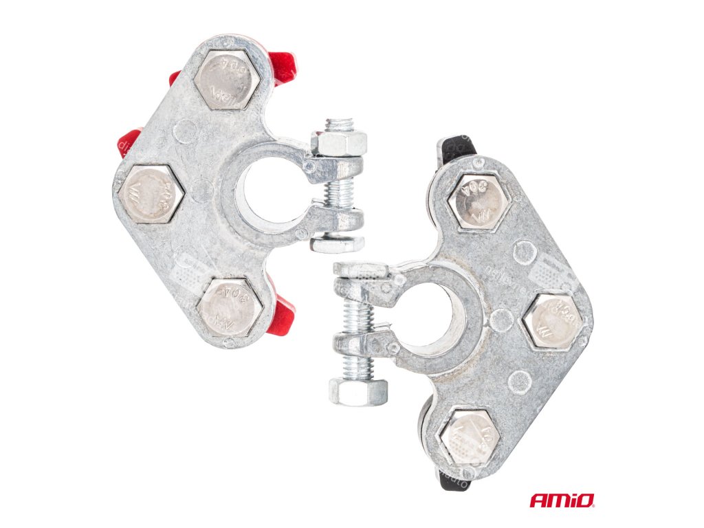 Odolné svorky pro baterie ze slitiny zinku, galvanicky pozinkované pro zvýšenou odolnost proti korozi. Navrženy pro pevné a bezpečné připojení napájecích kabelů k bateriovým svorkám. Vhodné pro automobilové i průmyslové aplikace.