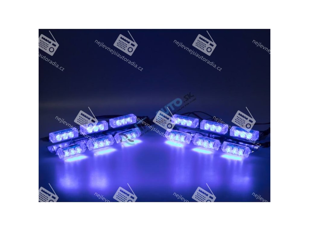4 přídavná modrá výstražná LED světla pro externí povrchovou montáž, především do přední mřížky vozidla.