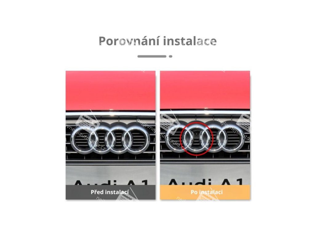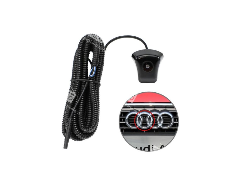 Barevná parkovací kamera přední. Je určena pro zabudování do přední masky vozu Audi Vhodné např. pro kombinaci s monitorem, nebo s adaptéry pro připojení k originální navigaci. Kamera zároveň zobrazuje pomocné trajektorie pro parkování.