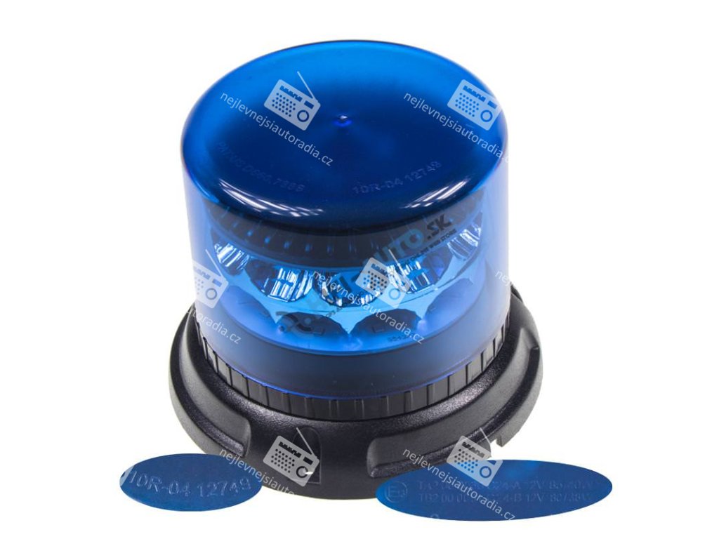 Profesionální modrý LED maják s výrazným výstražným efektem, speciální optika na bázi fresnelových šošovek.