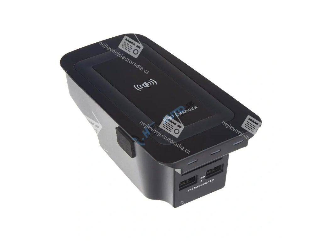 Nabíjecí jednotka pro bezdrátové dobíjení mobilních telefonů prostřednictvím technologie Qi.