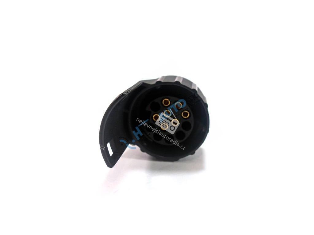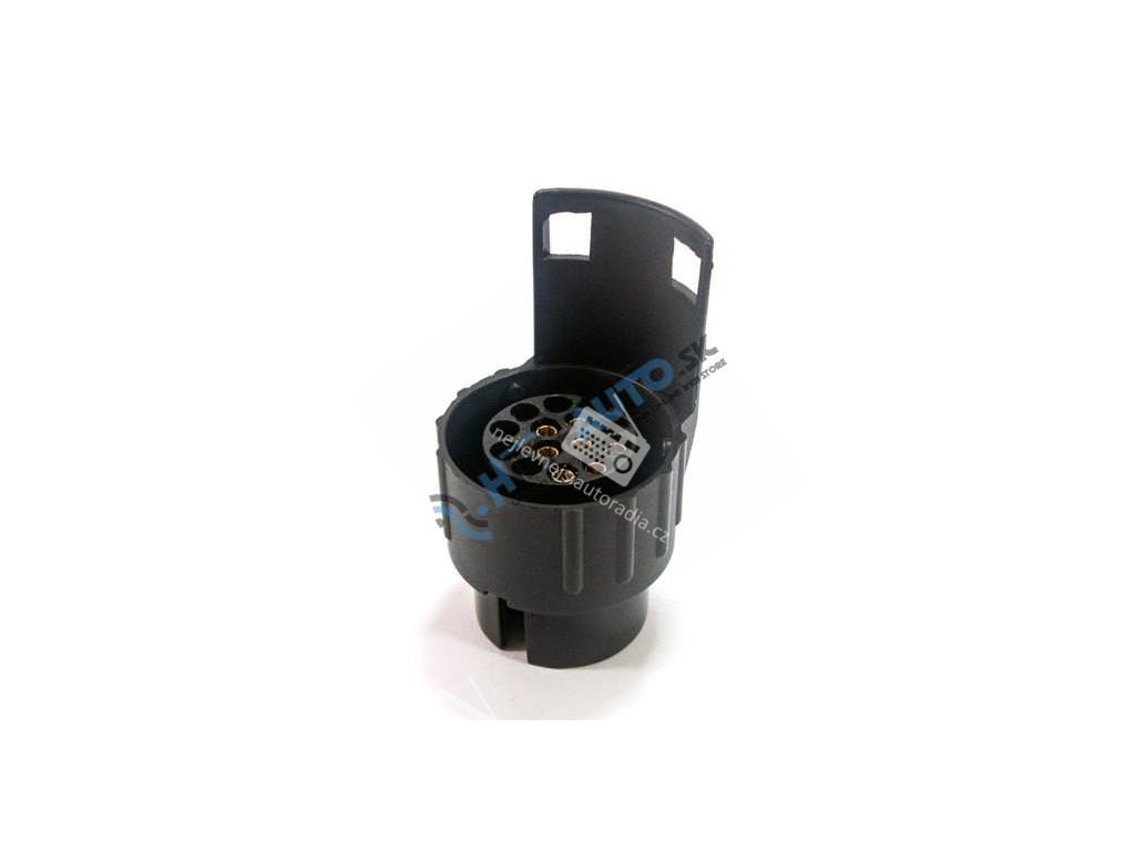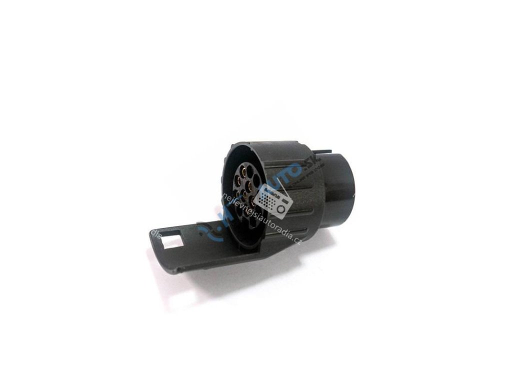 Použití pro vůz se 7pólovou zásuvkou a přívěs s 13 konektorovou zástrčkou. Redukce montážní zásuvky na vozík. Materiál: plast. 7-pin na 13-pin.