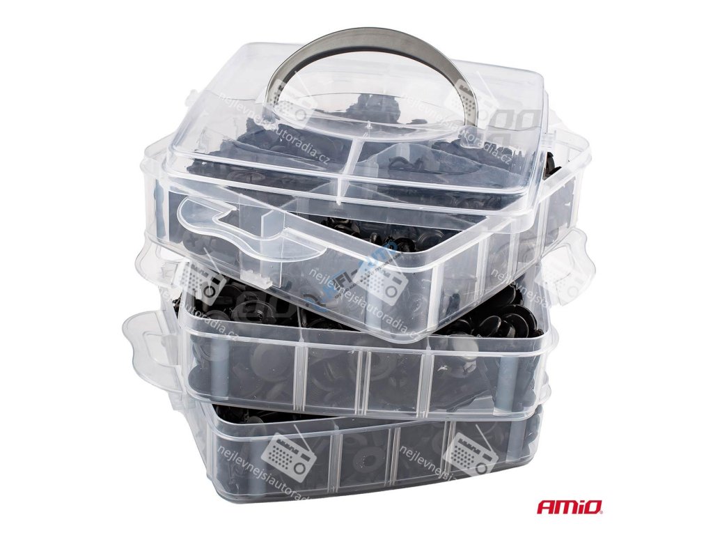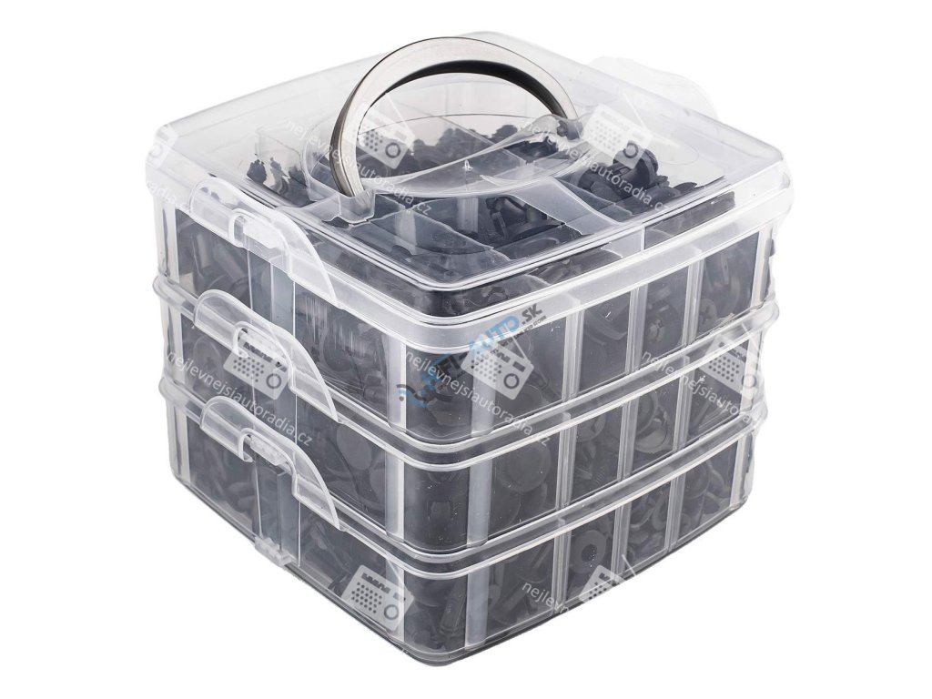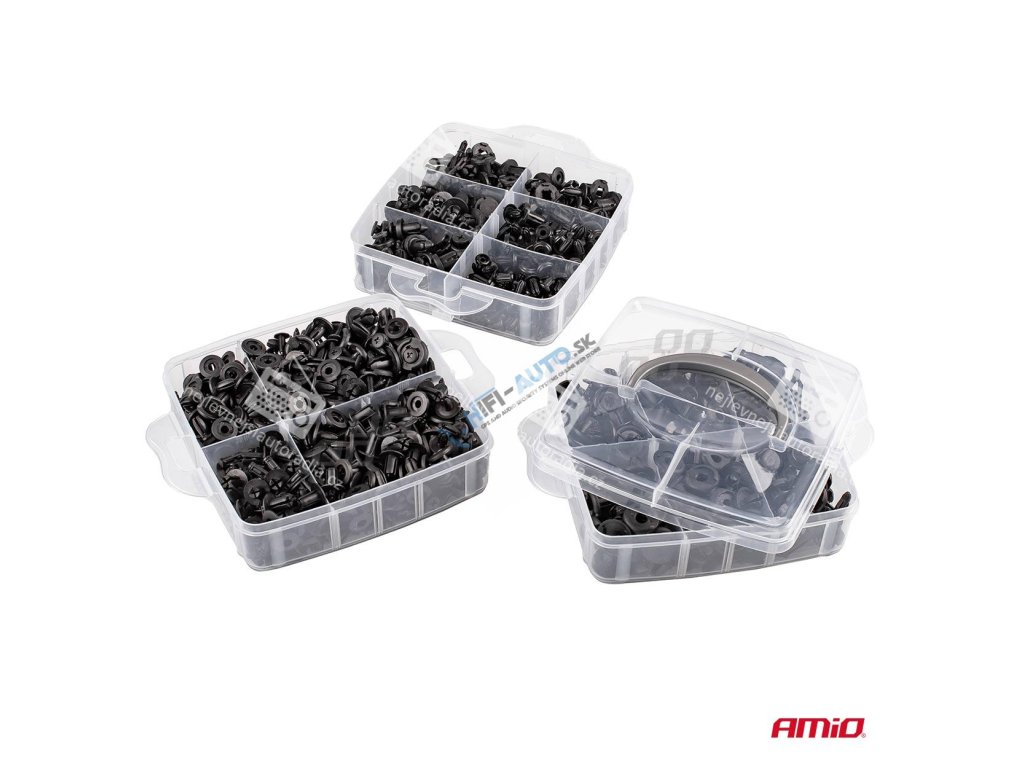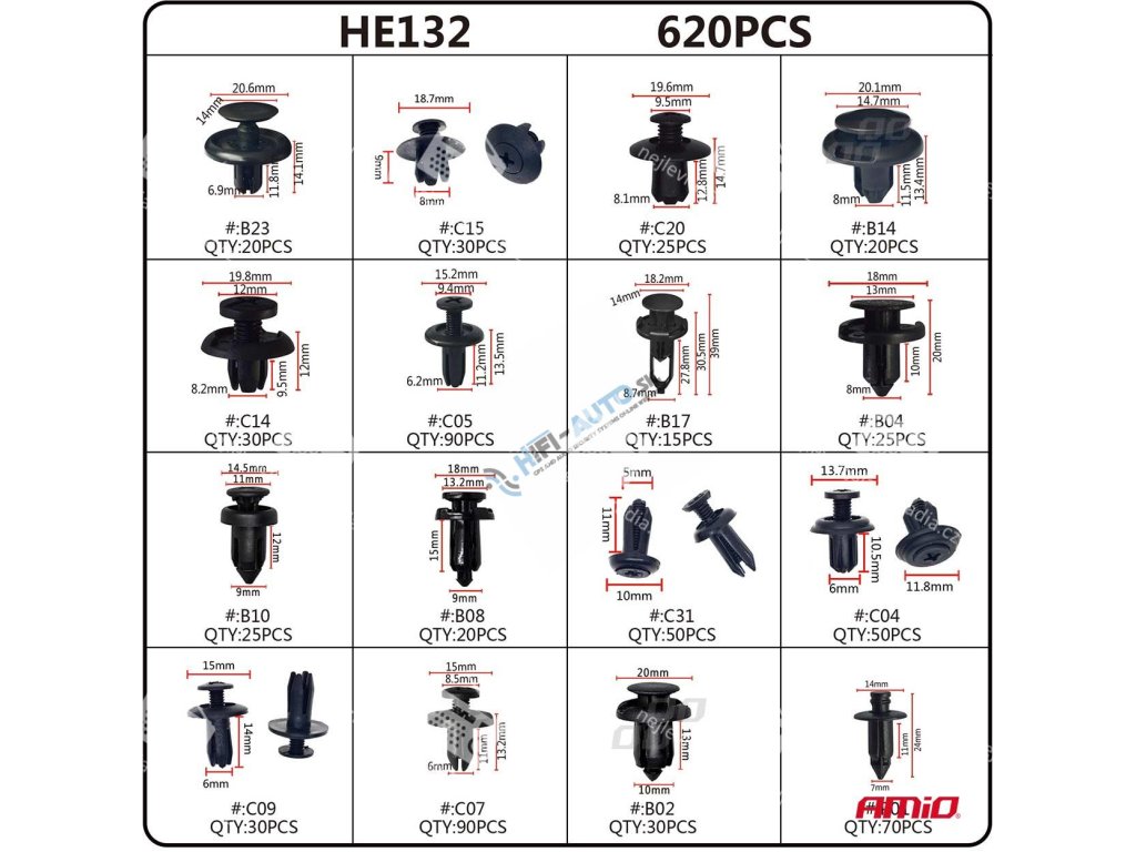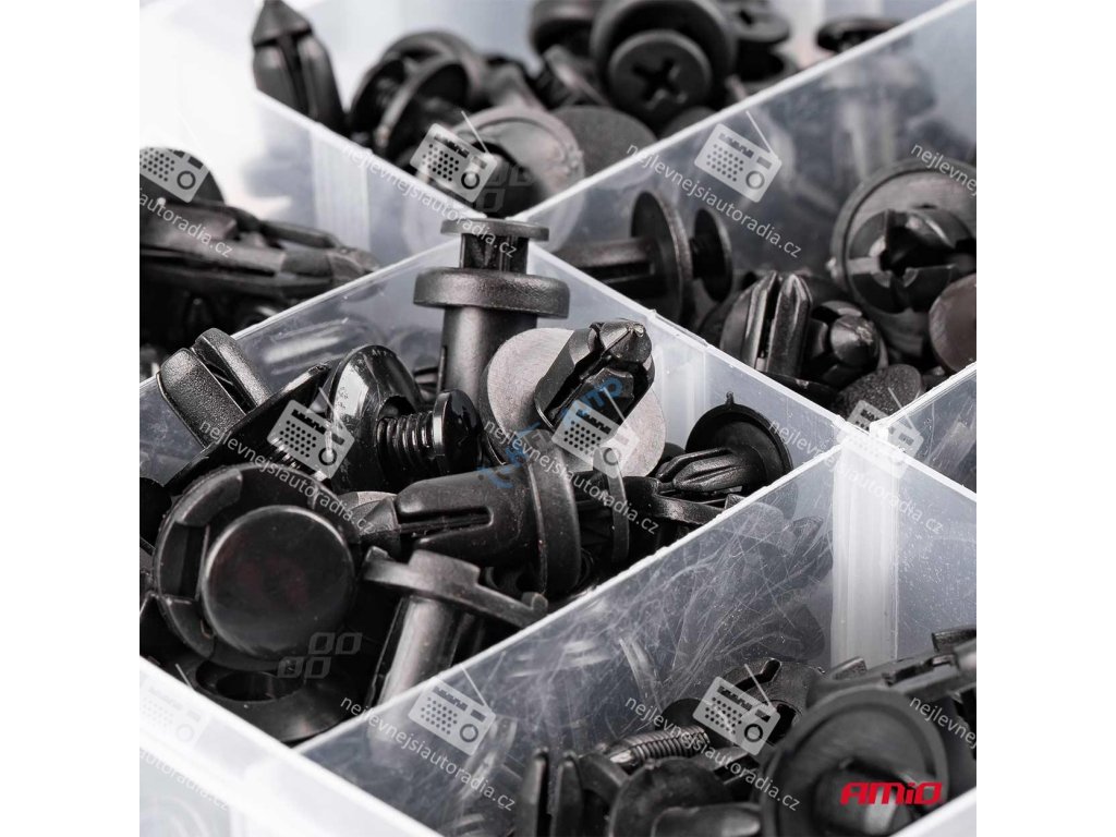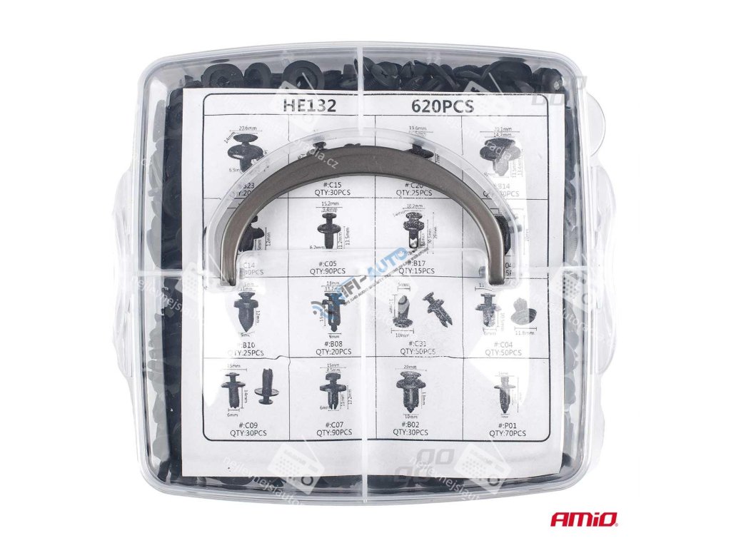 Sada 620 ELEMENTŮ obsahující 16 nejpopulárnějších velikostí klipů a spojovacích prvků. Univerzální klipy jsou vhodné pro většinu značek automobilů. Klipy - plastové spony jsou skvělé pro obložení interiéru auta, upevnění blatníků nebo nárazníků, jakož i jiné univerzální aplikace. Odolné vůči povětrnostním vlivům - vodotěsné upevňovací spony nerezaví ani nekorodují při špatných povětrnostních podmínkách. Vyrobeno z pevného a odolného materiálu - plastu. Nezbytná položka pro garáže a garáže. Klipy zabalené v plastové krabičce, takže budou vždy na jednom místě.