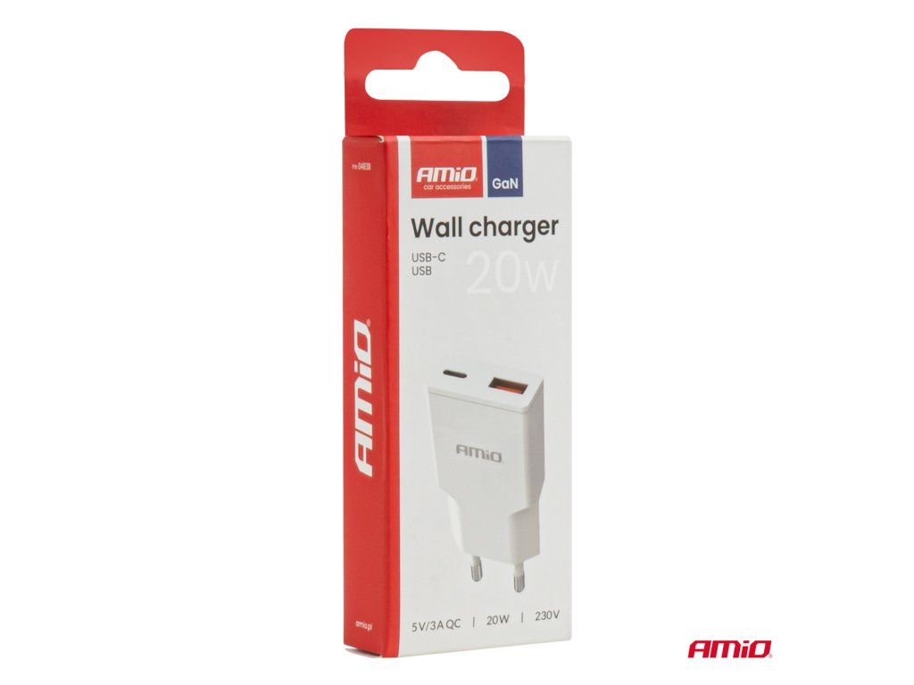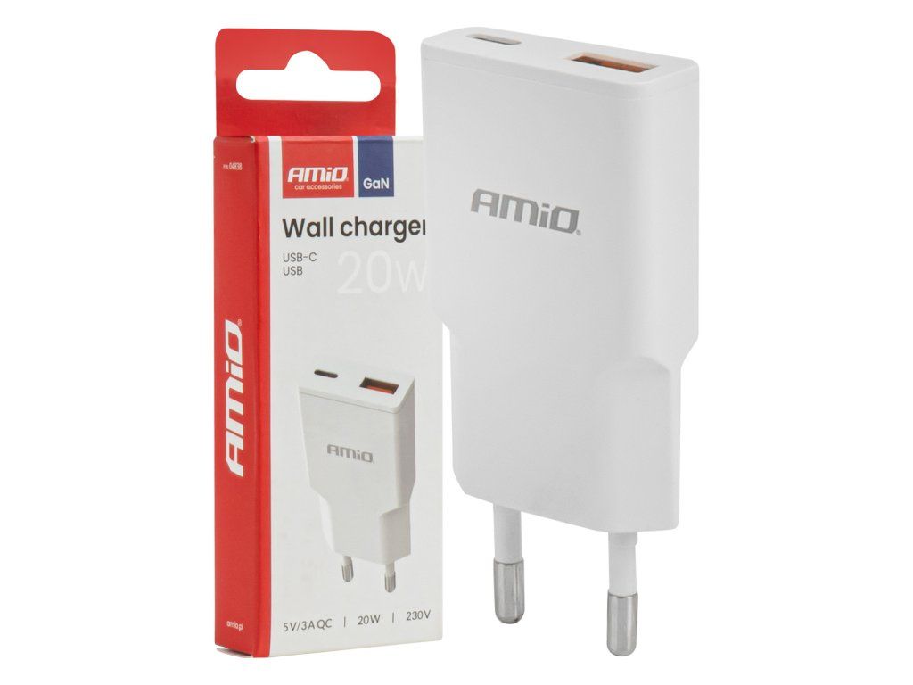 Síťová nabíječka 230V 20W GaN USB-C USB-A