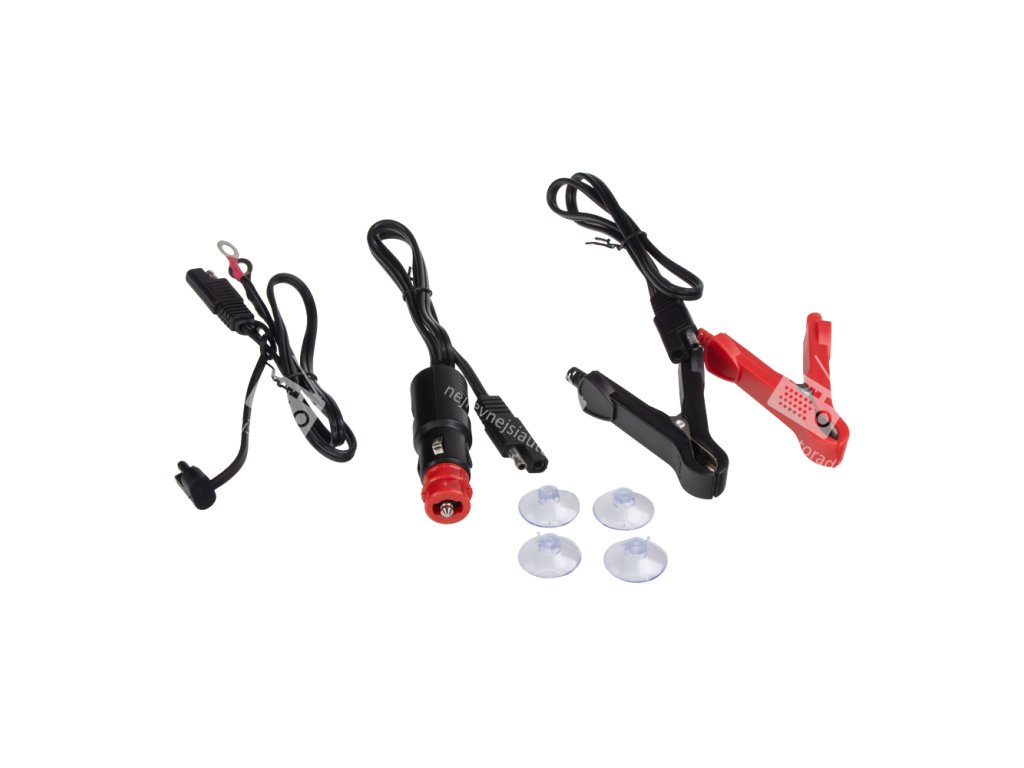 Připojení k baterii je rychlé a jednoduché, a to buď pomocí: kabelu se svorkami na baterii, kabelu s očky nebo kabelu se zástrčkou do cigaretového zapalovače, které jsou součástí příslušenství.
