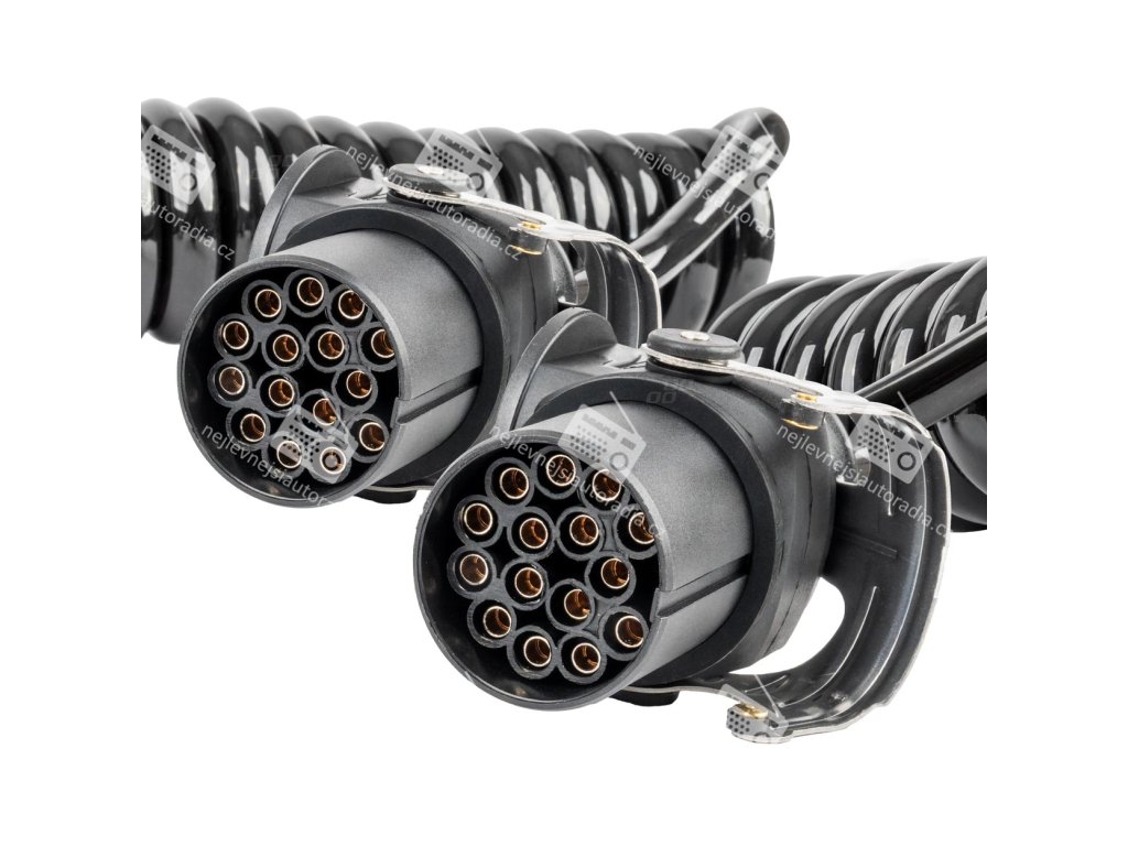 Profesionální spirálový kabel se dvěma 15 PIN konektory, určený pro 24V instalace. Poskytuje komplexní elektrické propojení mezi tahačem a návěsem – pro osvětlení, ABS/EBS systémy a další zařízení podle normy DIN ISO 12098.