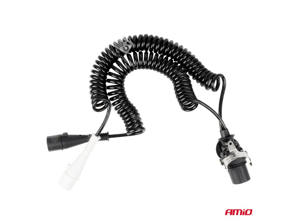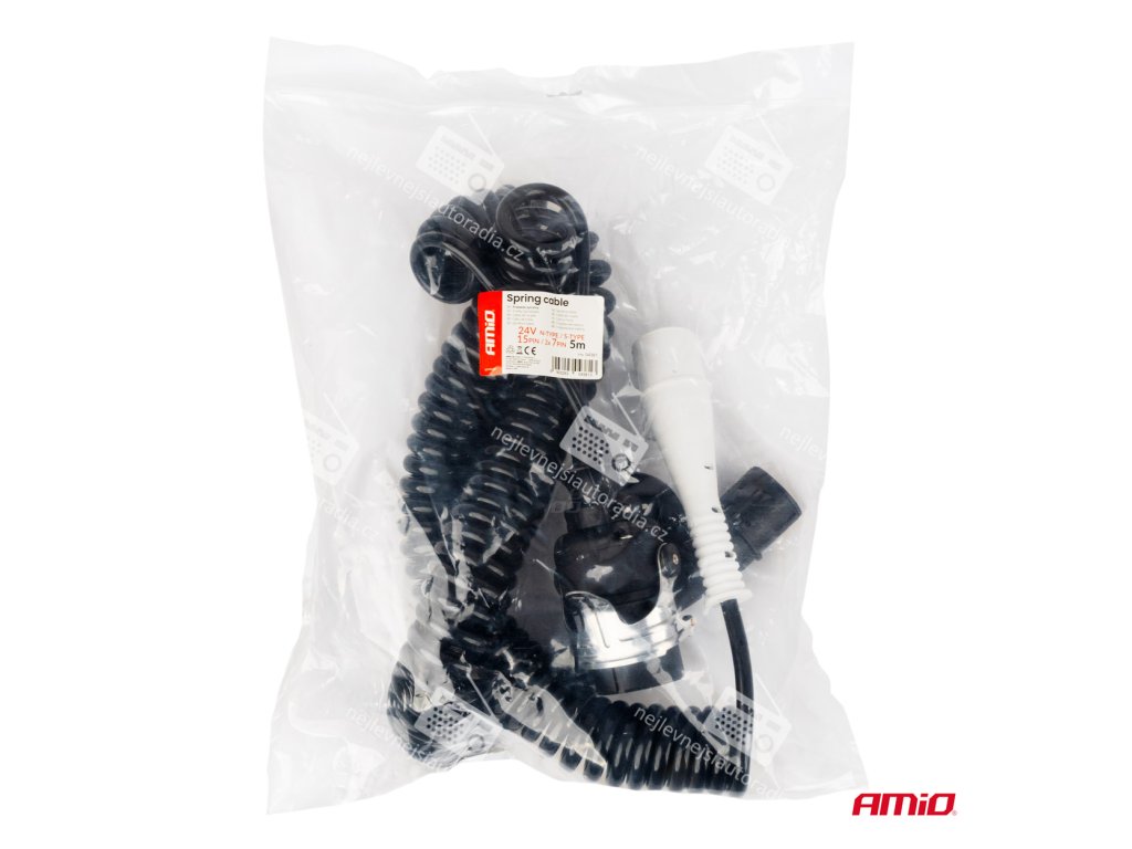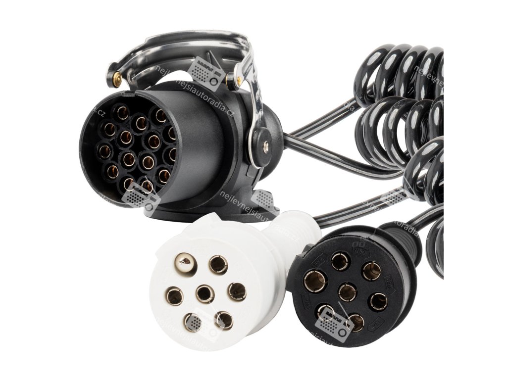 Vysoce kvalitní sada spirálových kabelů k návěsu – obsahuje jeden konektor 15 PIN a dva vstřikované konektory 7 PIN typu N a S. Určena pro 24V instalace, zajišťuje úplné a spolehlivé elektrické propojení tahače s návěsem dle evropských norem.