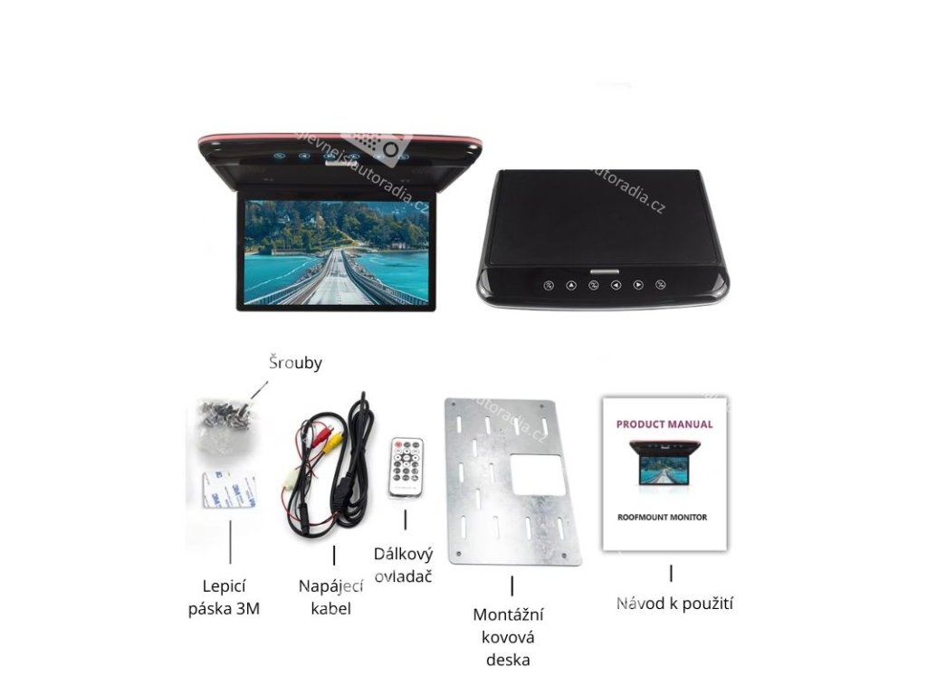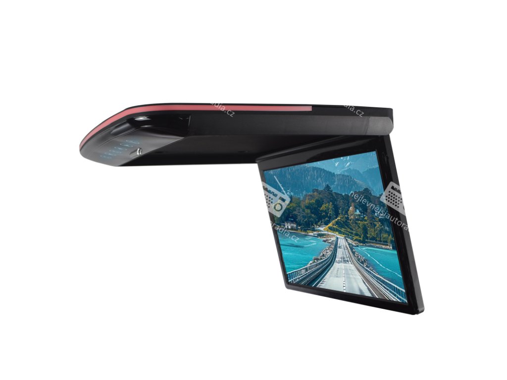 Kvalitní extrémně plochý stropní výklopný LED LCD monitor 15,6" S HDMI vstupem, čtečkou USB a micro SD, se zobrazením 16:9, 7 barev ambientního osvětlení.