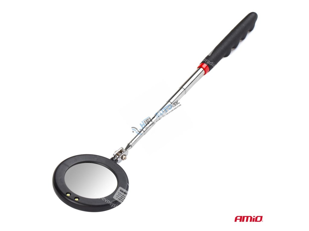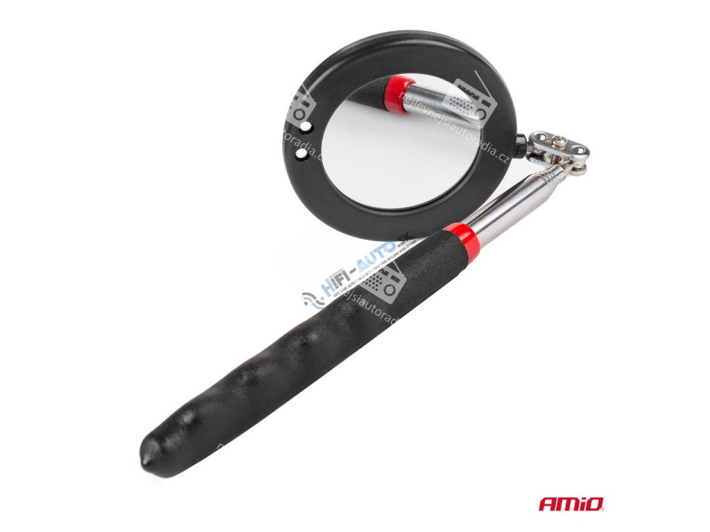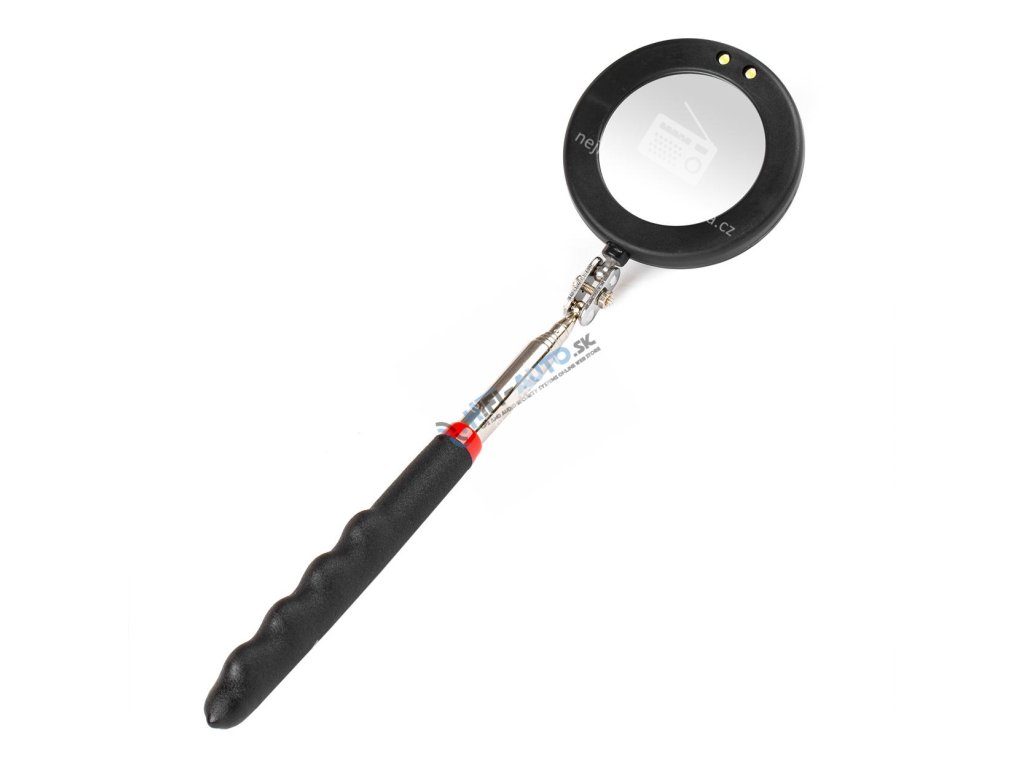 Inspekční zrcadlo na teleskopickém rameni, vybavené dvěma LED diodami. Nepostradatelný produkt v každé garáži. Umožňuje prohlížení nepřístupných, skrytých prvků konstrukce aut, strojů a pod. Zrcadlo má 360° nastavitelnou polohu vůči výsuvnému ramenu. Skvěle se bude hodit pro profesionální použití i do domácí garáže.